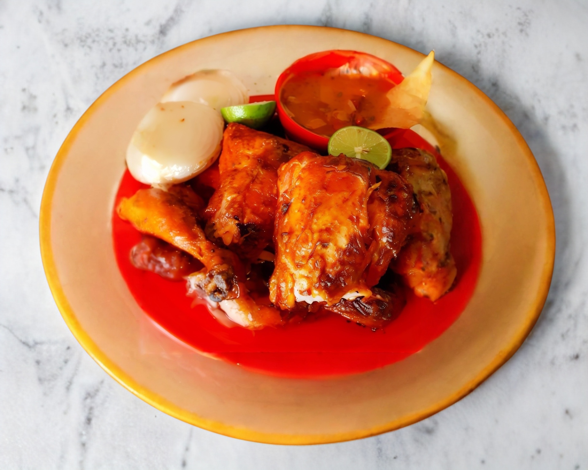 4 Piernas y 4 MuslosIncluye : Salsa de tomate , salsa de cacahuate , cebollas , tortillas y limones