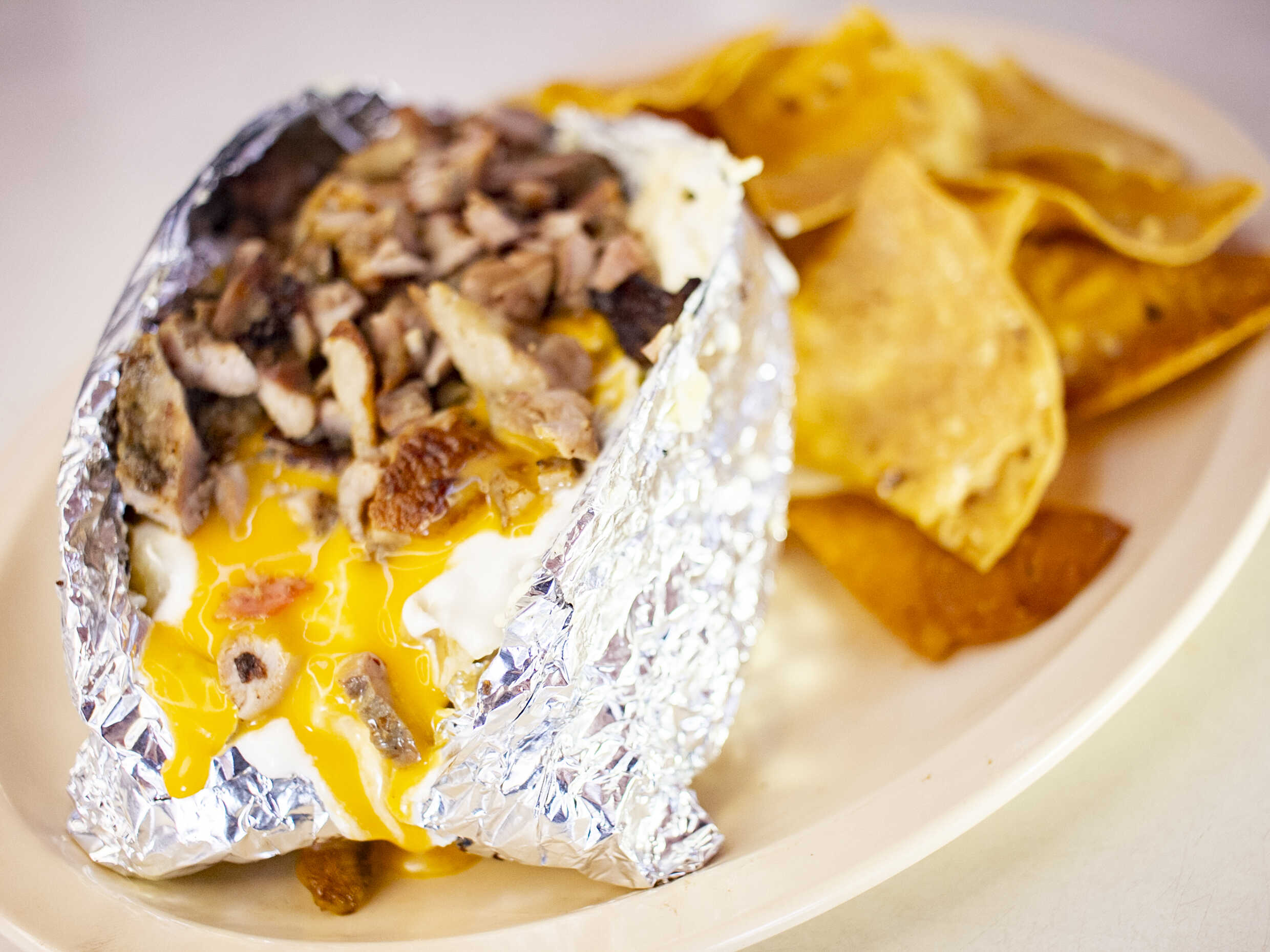 Papa asada con carne