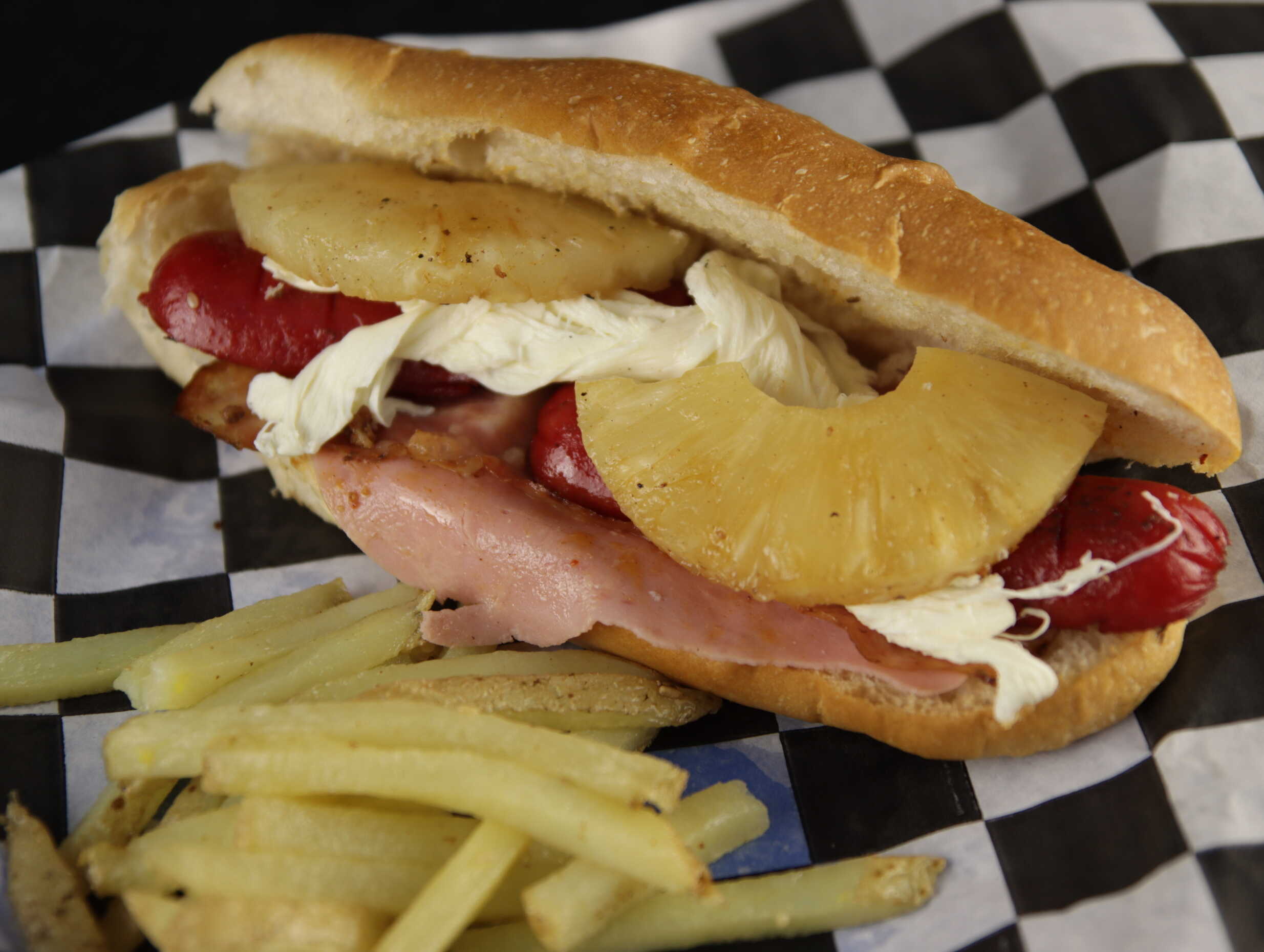Hot-Dog Hawaiano con Papas.