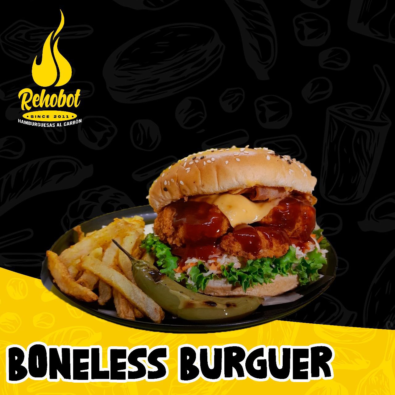 Boneless Burger con Papas.
