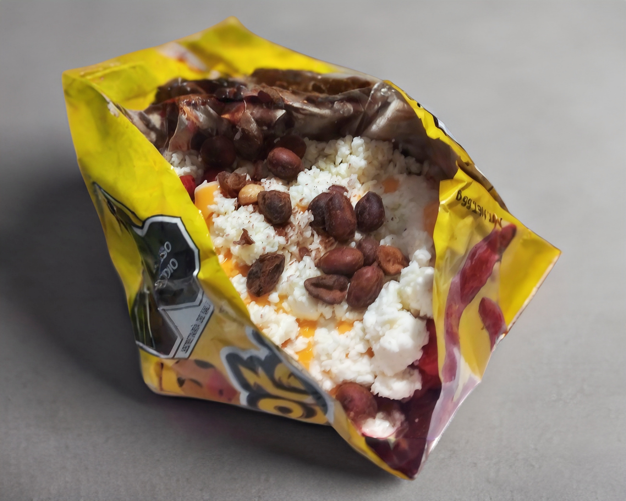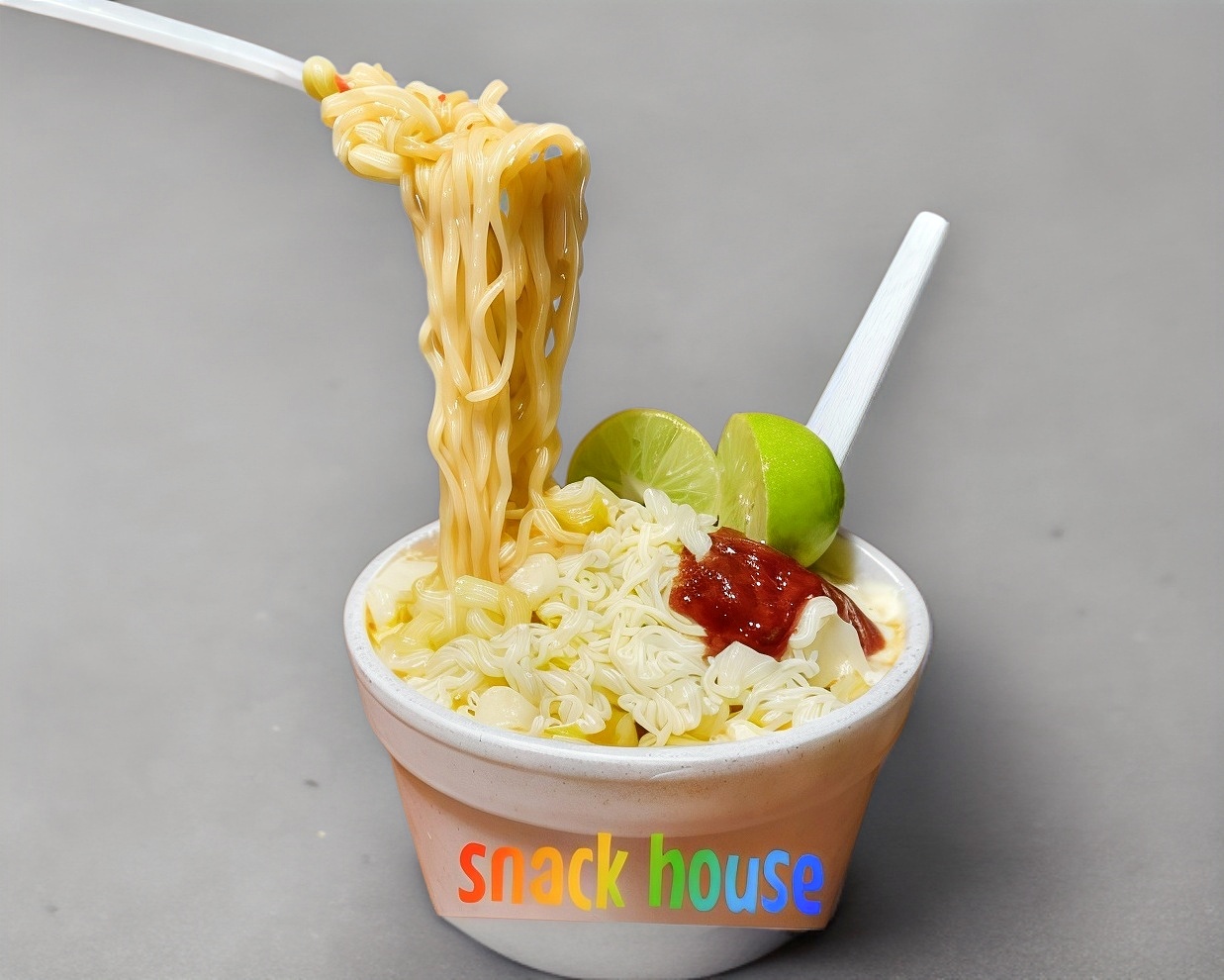 Maruchan con maiz desgranado,mantequilla,mayonesa y queso blanco (salsa y cacahuates van aparte)