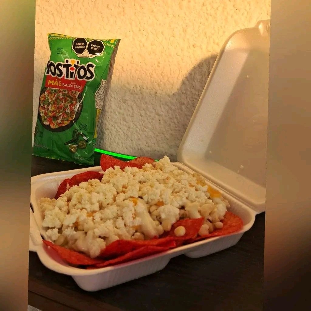 Doritos con elote desgranado,mayonesa,y queso blanco (salsa y cacahuates van aparte)