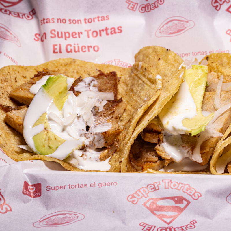Tortilla recién hecha pierna, aguacate cebolla y crema