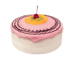 Encantadora delicia de pan vainilla salseado en jugo de durazno, con doble relleno de nuestra receta exclusiva de crema Suspiros de yogurt de fresa junto con trocitos de durazno, decorado con un delicioso baño de suave crema líquida Suspiros de fresa, decorado con durazno, kiwi y cereza, con líneas