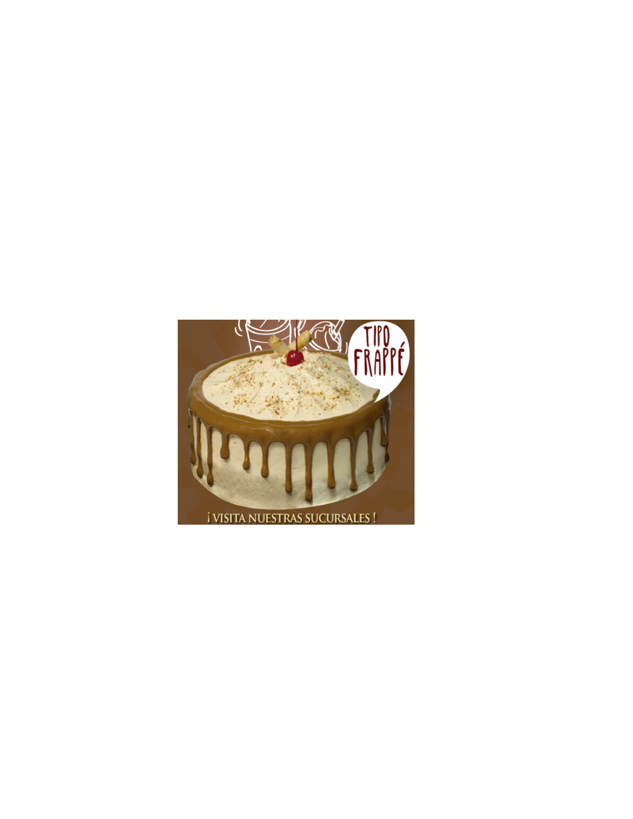 Esponjoso pan vainilla, salseado en 3 leches café, con doble relleno de crema chiboust sabor café y cubierto nuevamente con la original crema Suspiros café, decorado con ganache de chocolate, barquillos y una cereza en el centro.