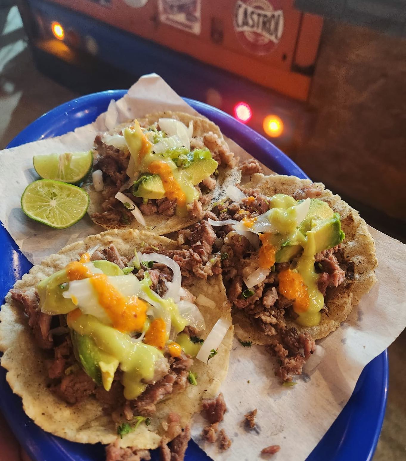 Delicioso taco en tortilla de maíz recién hecha a elegir entre Asada, Longaniza o Costilla