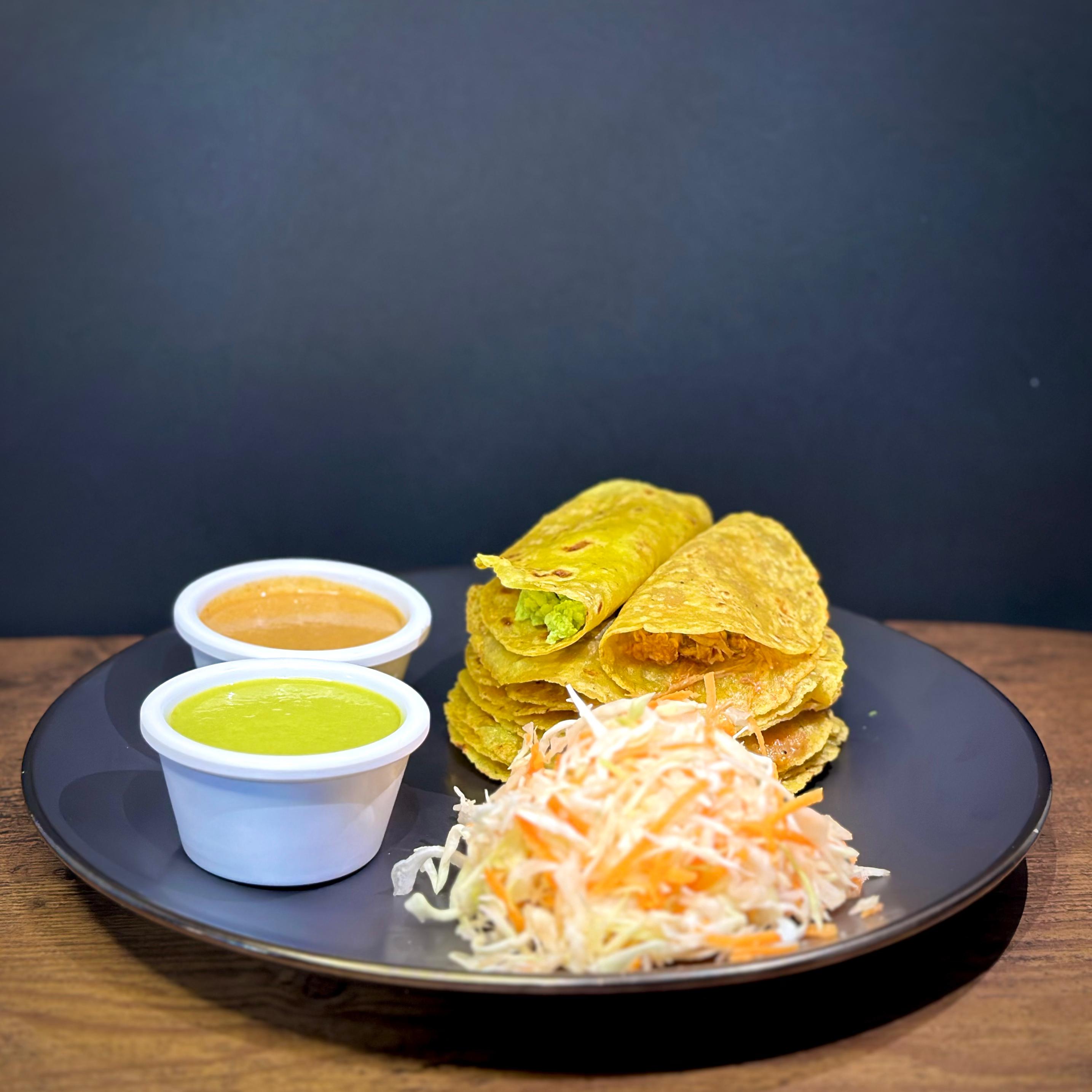 Paquete: Tacos Surtidos 5 Piezas. Acompañado de repollo y salsa.