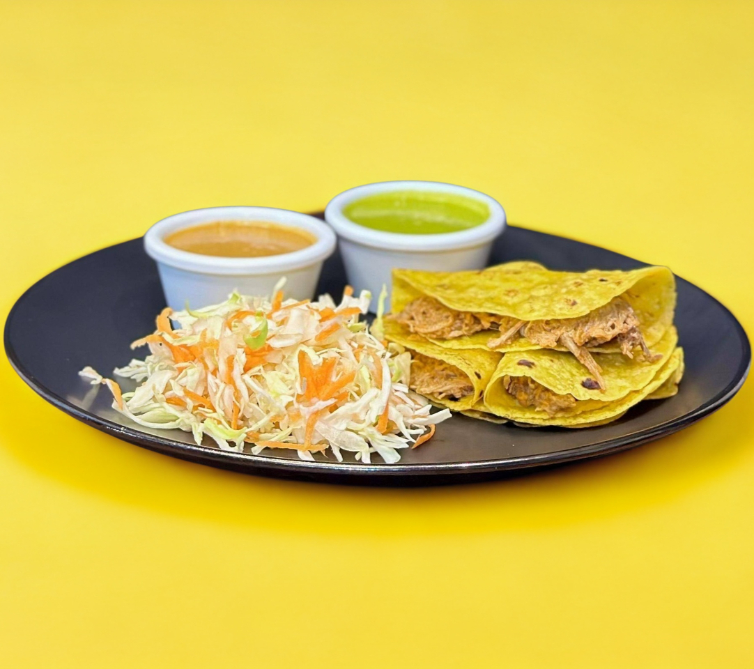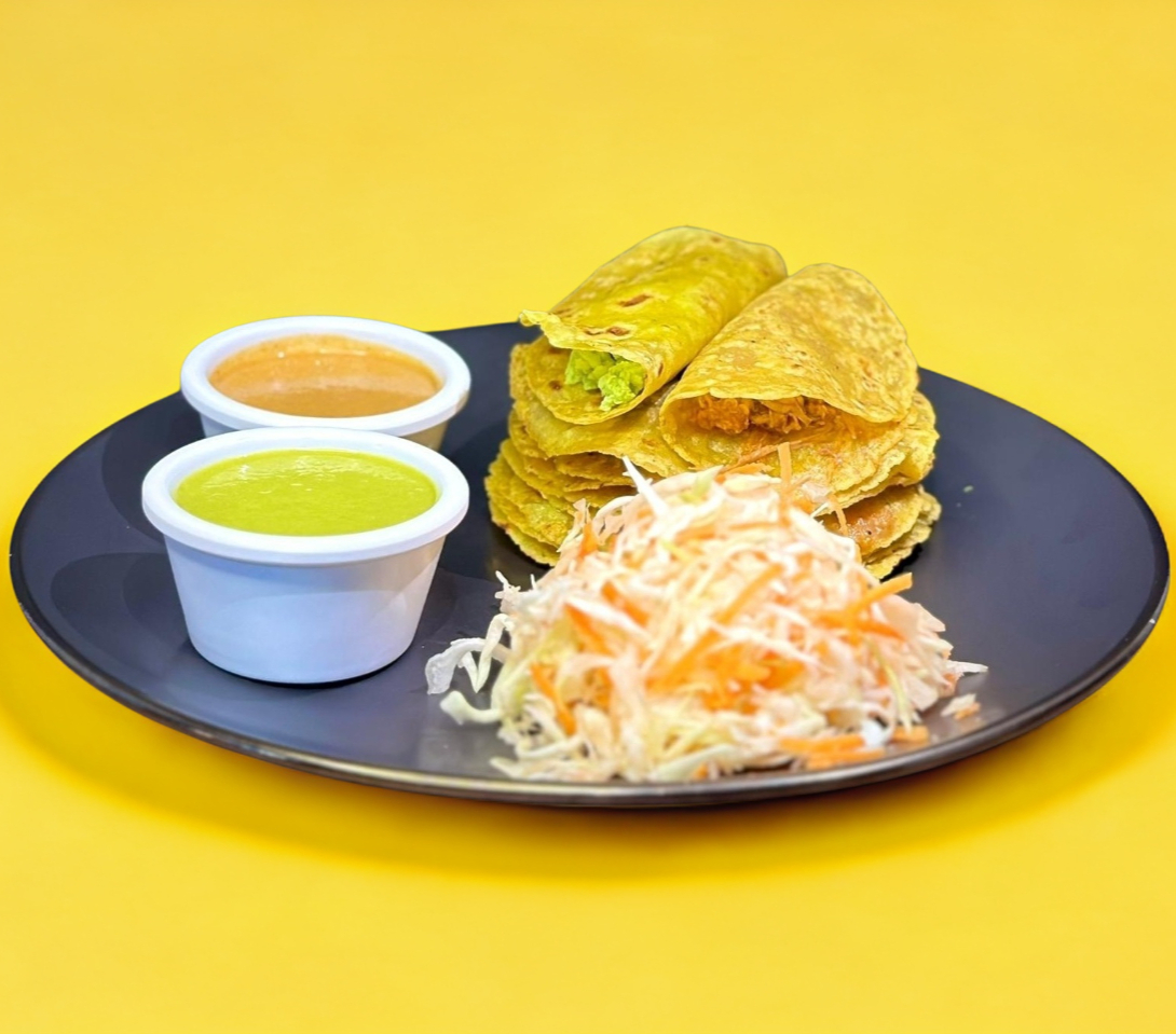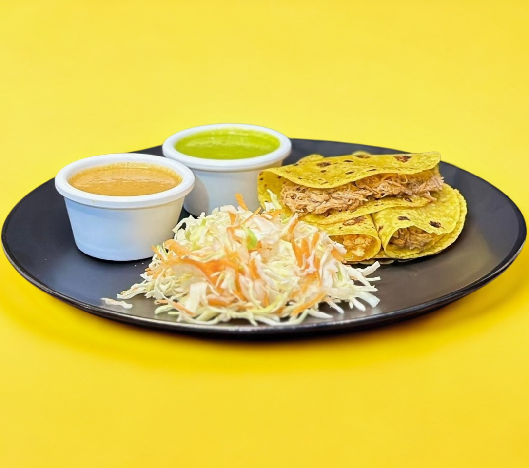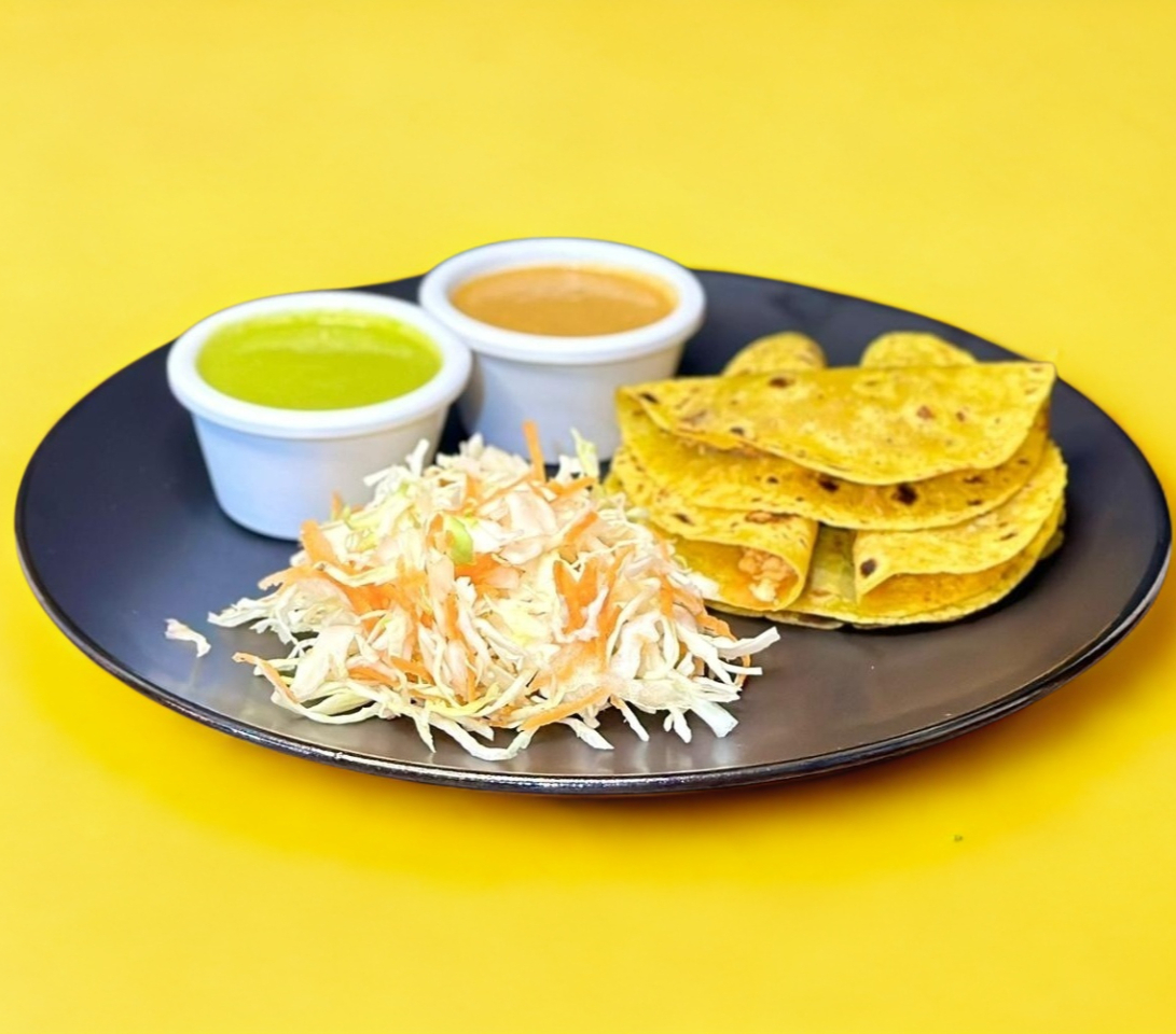Paquete: Tacos Surtidos 5 Piezas. Acompañado de repollo y salsa.