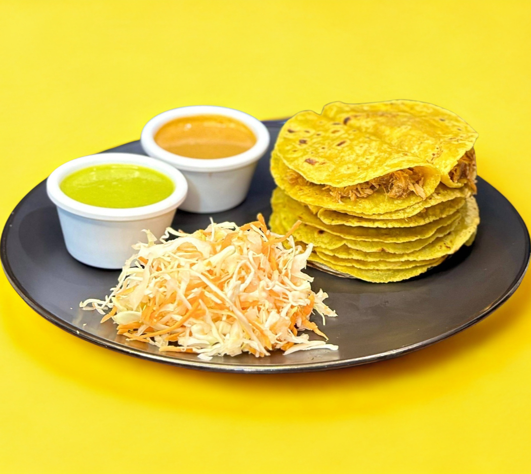 Paquete personal: 10 Tacos Surtidos, acompañados de repollo, salsa verde o roja (a disponibilidad). Tortilla chica.