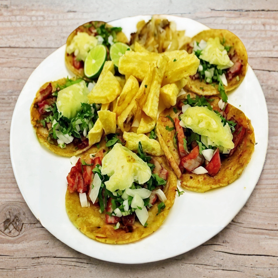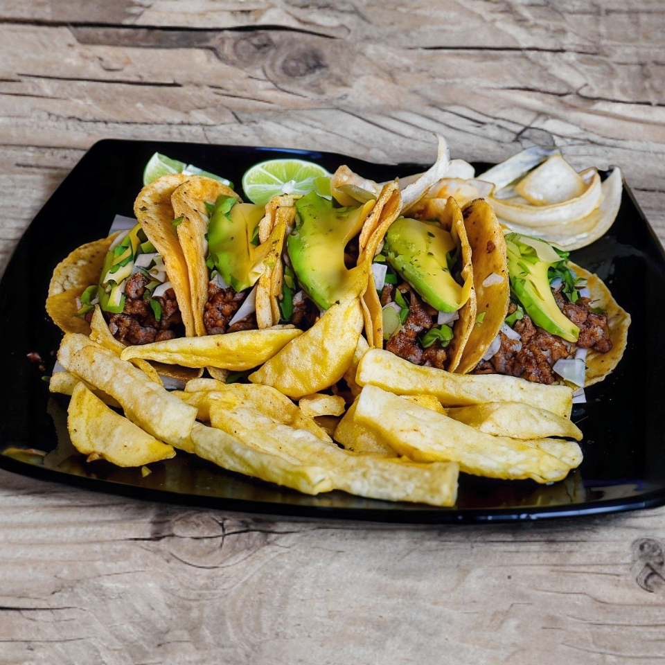 Incluye 4 tortillas, cilantro, cebolla y crema de aguacate.