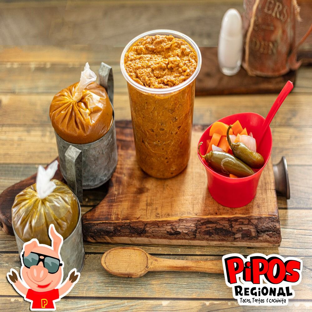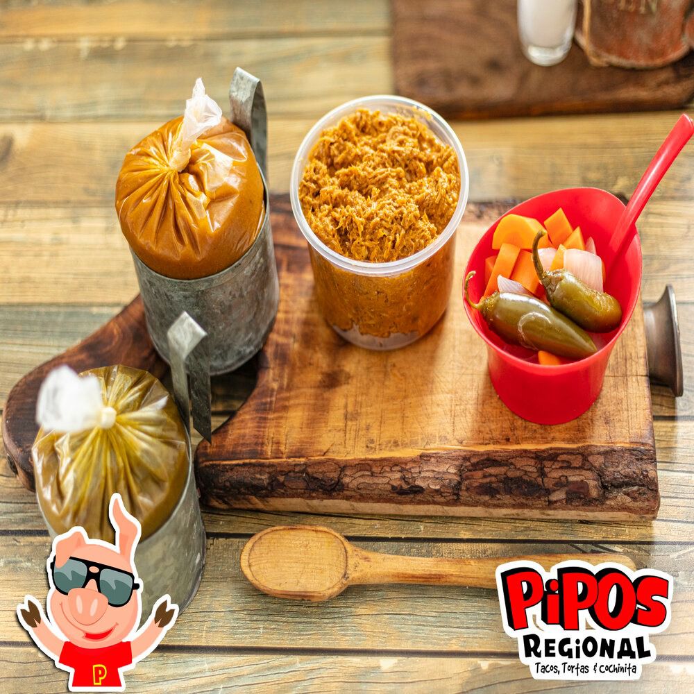 1 Kilo de cochinita, salsa, zanahoria y caldo.