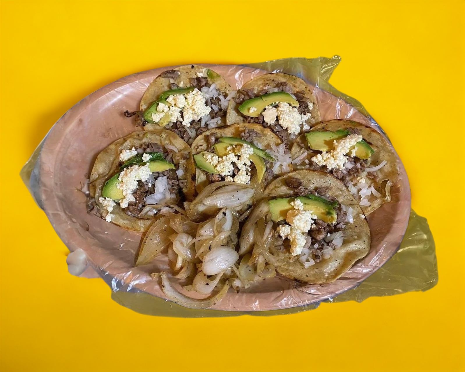 6 Tacos de Maíz (carne, cebolla cruda, aguacate, queso y cebolla asada)