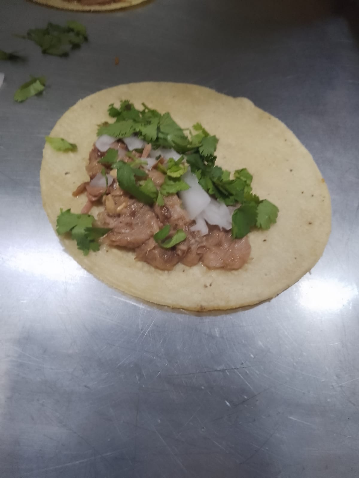 Barbacoa de res, cebolla y cilantro.