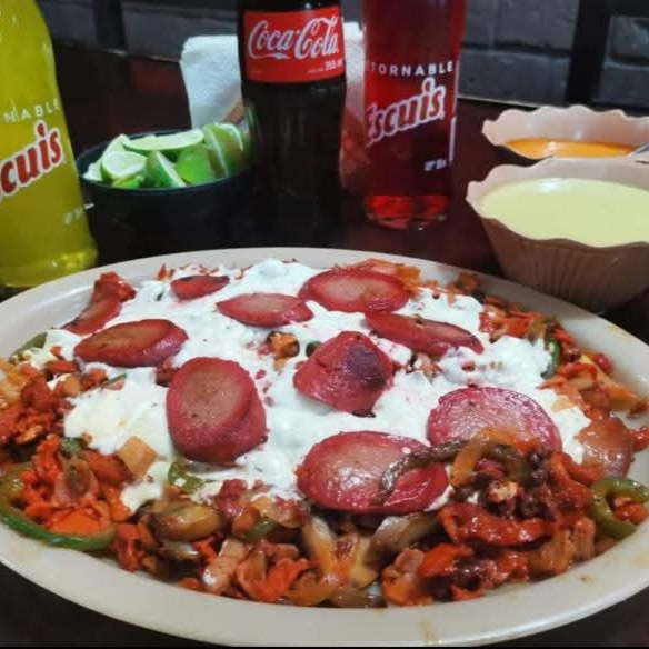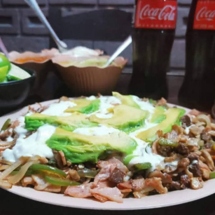 Especialidad Para 5-6 Personas Con Carne De Chuleta, Jamón, Tocino, Cebolla, Pimiento, Aguacate, Queso Asadero.