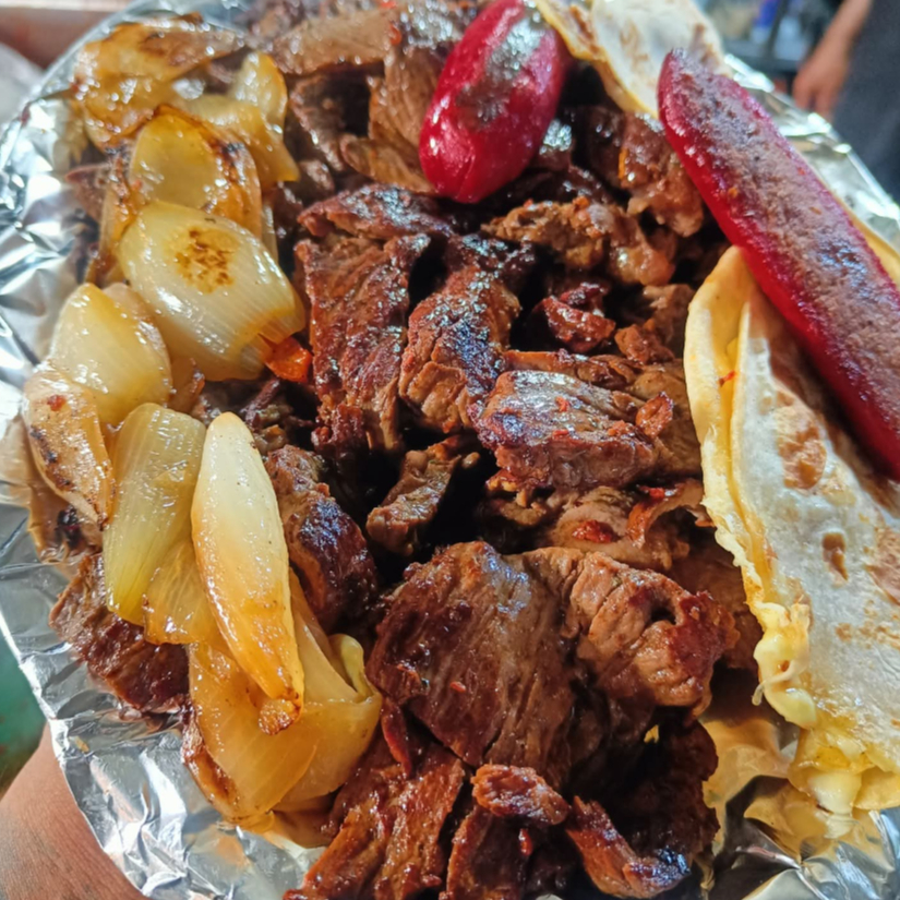 Medio Kilo de Arrachera Lleva 30 Tortillas, Salchichón, Quesadillas, Salsas y Plato De Verduras.