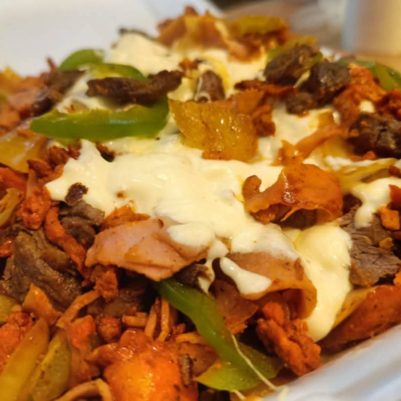 Puré De Papa, Con Agregado Mantequilla, Pastor, Arrachera, Chuleta, Queso Amarillo, Queso Asadero, Pimiento, Cebolla, Jamón, Tocino, Salchichón.