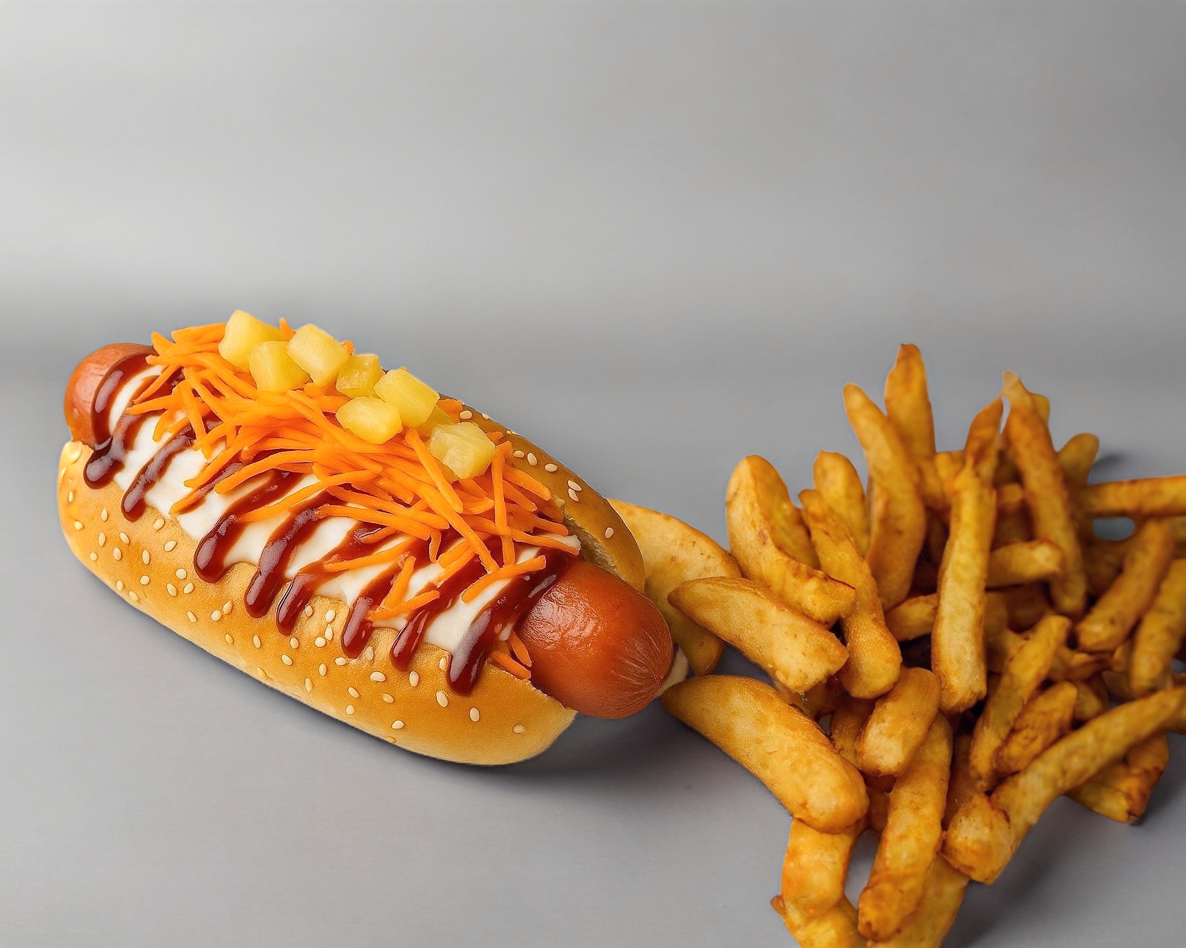 Hotdog Hawaiano Con Papas a la Francesa