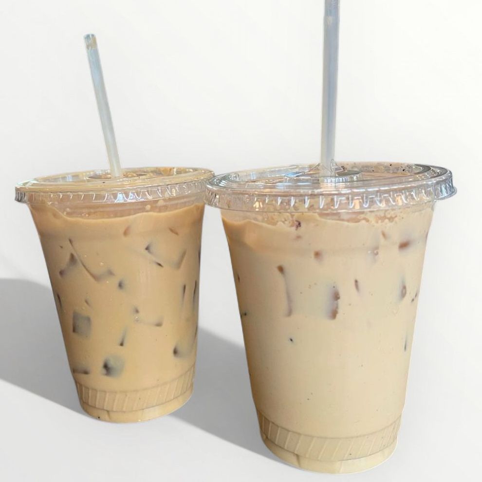 Cafe helado preparado con leche deslactosada y hielo en vaso de 16 oz