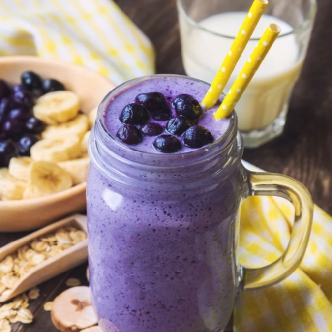Potente batido de plátano y moras azules, perfeccionado con crema de cacahuate natural y esencia de vainilla. Una explosión de sabor y energía para tu día.