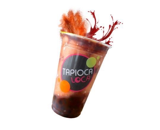 La dulce fresa se encuentra con el irresistible chamoy en esta refrescante bebida. Perfecta para esos días calurosos, ¡cada sorbo es un explosión de sabor que te hará sonreír!
