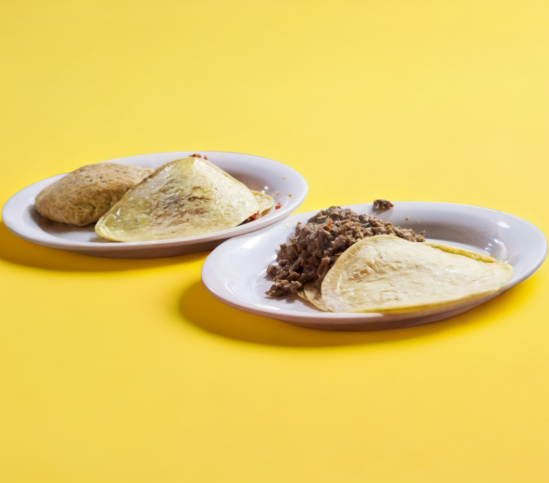 Deleítate con la torta de fajita, con aguacate, jamón, cebollitas asadas y salsa de la casa.