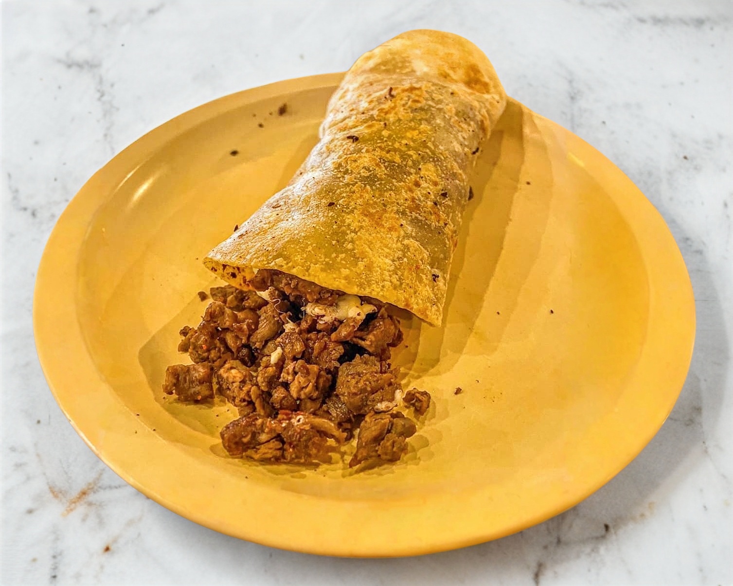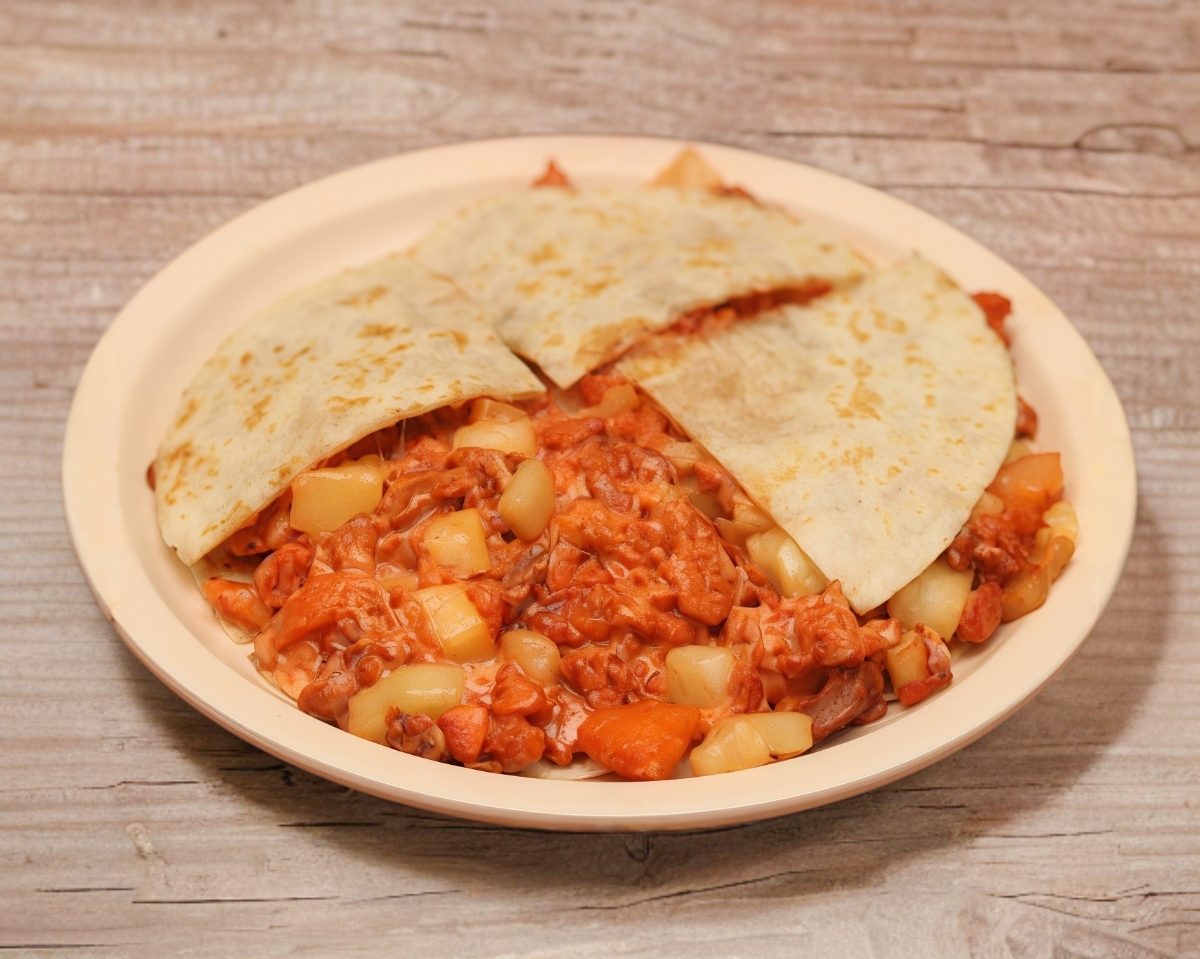 Fajita, queso, aguacate, tomate, cebolla y jamón.