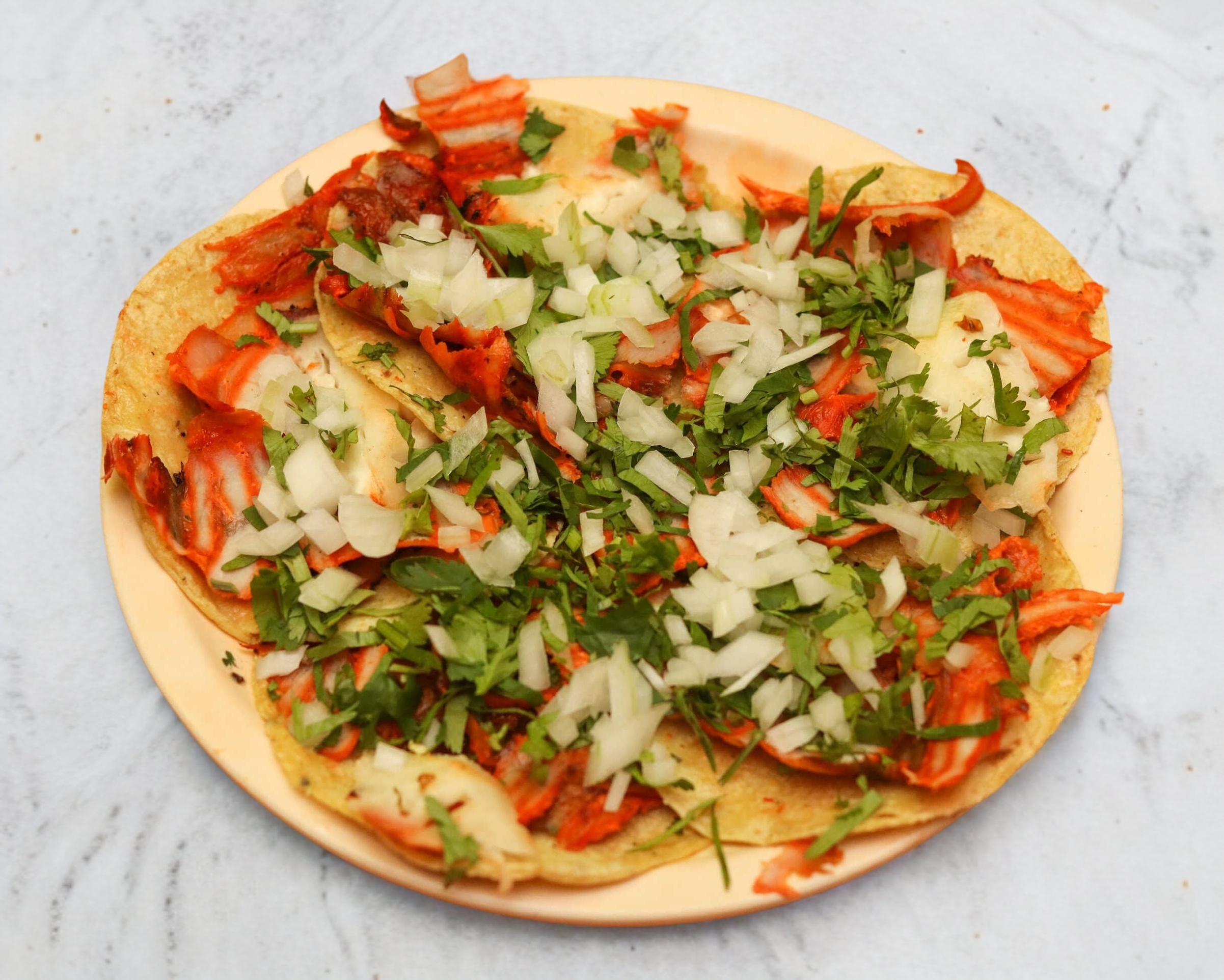 Pastor, fajita, queso, aguacate, tomate cebolla y jamón.