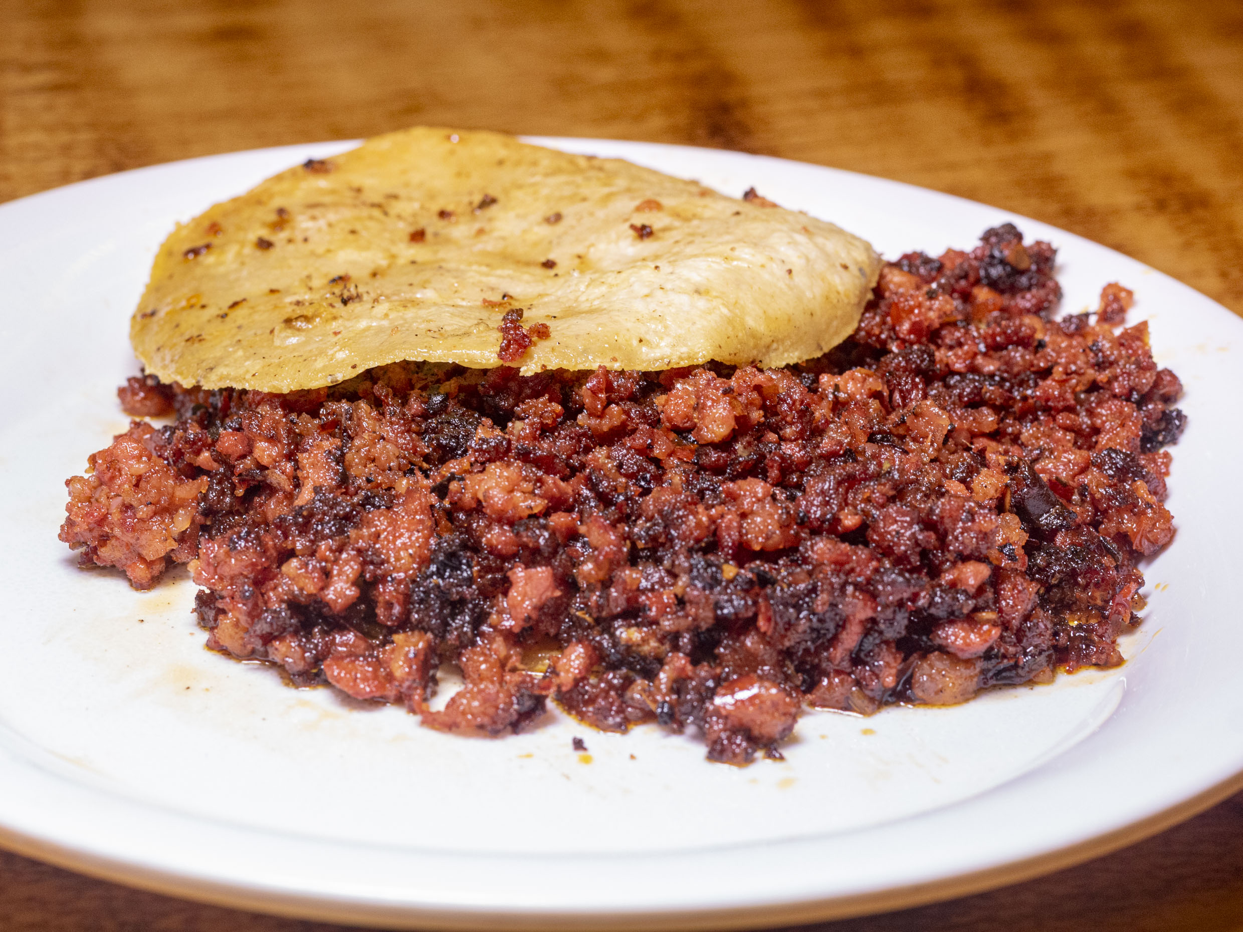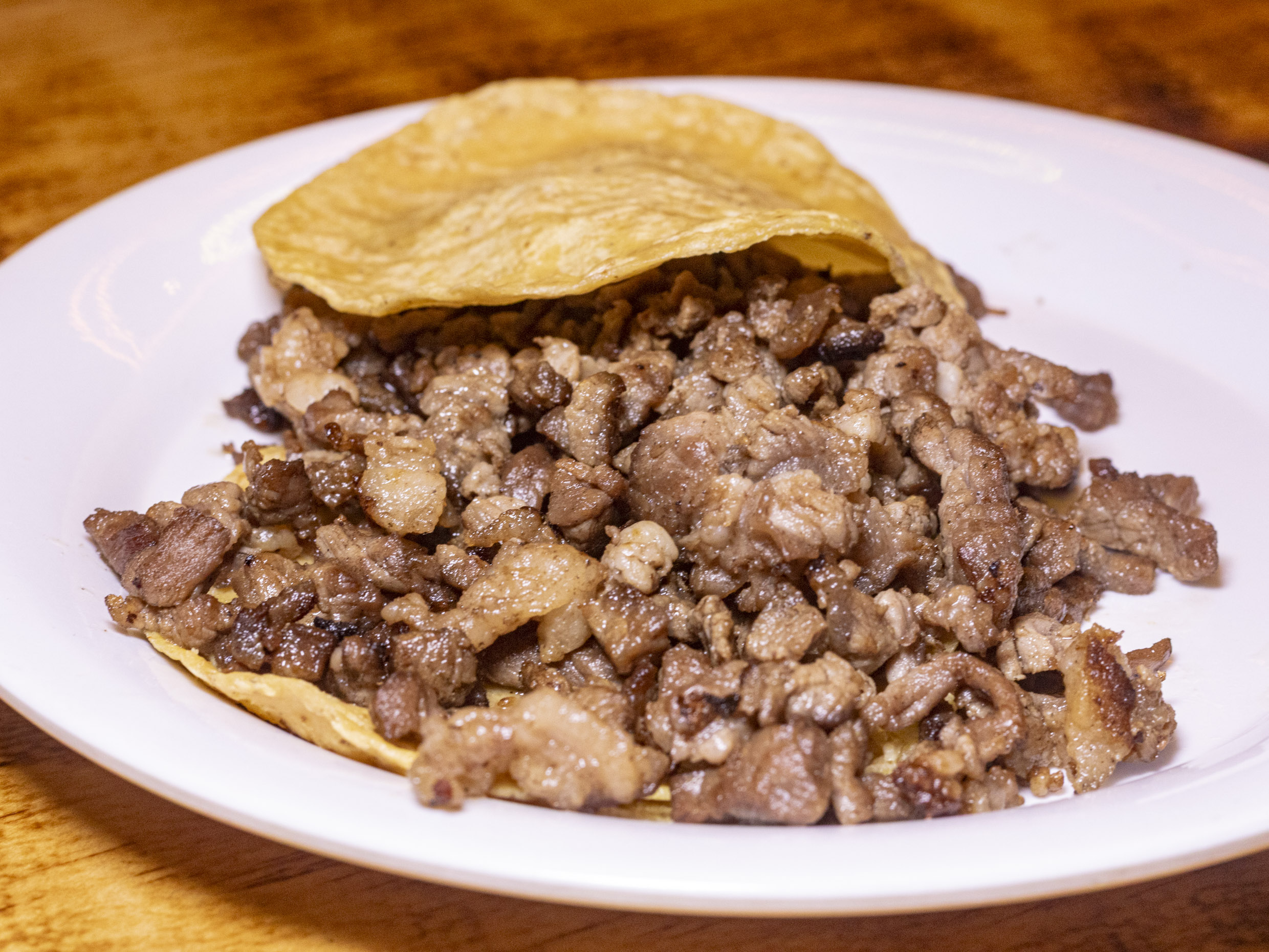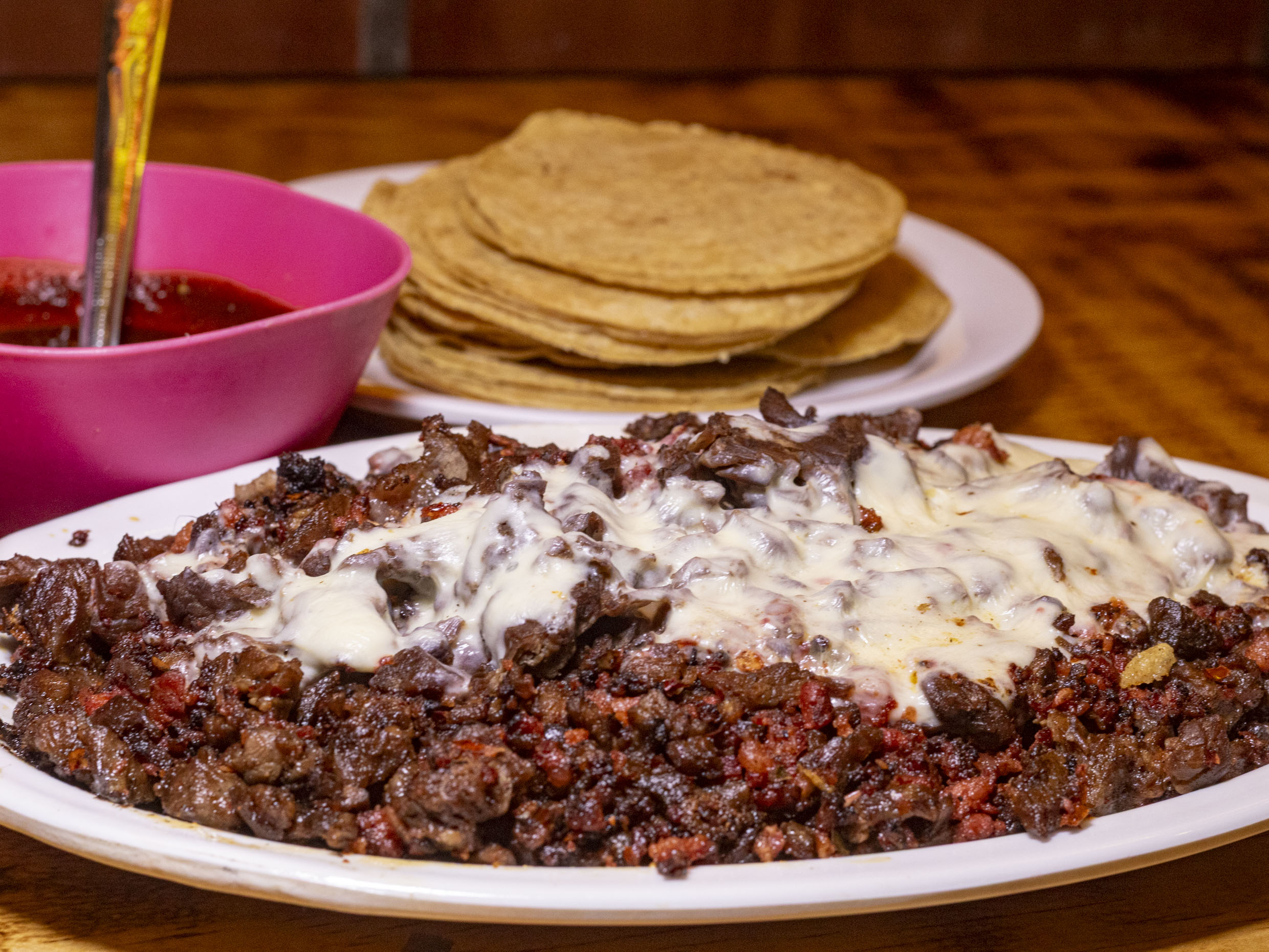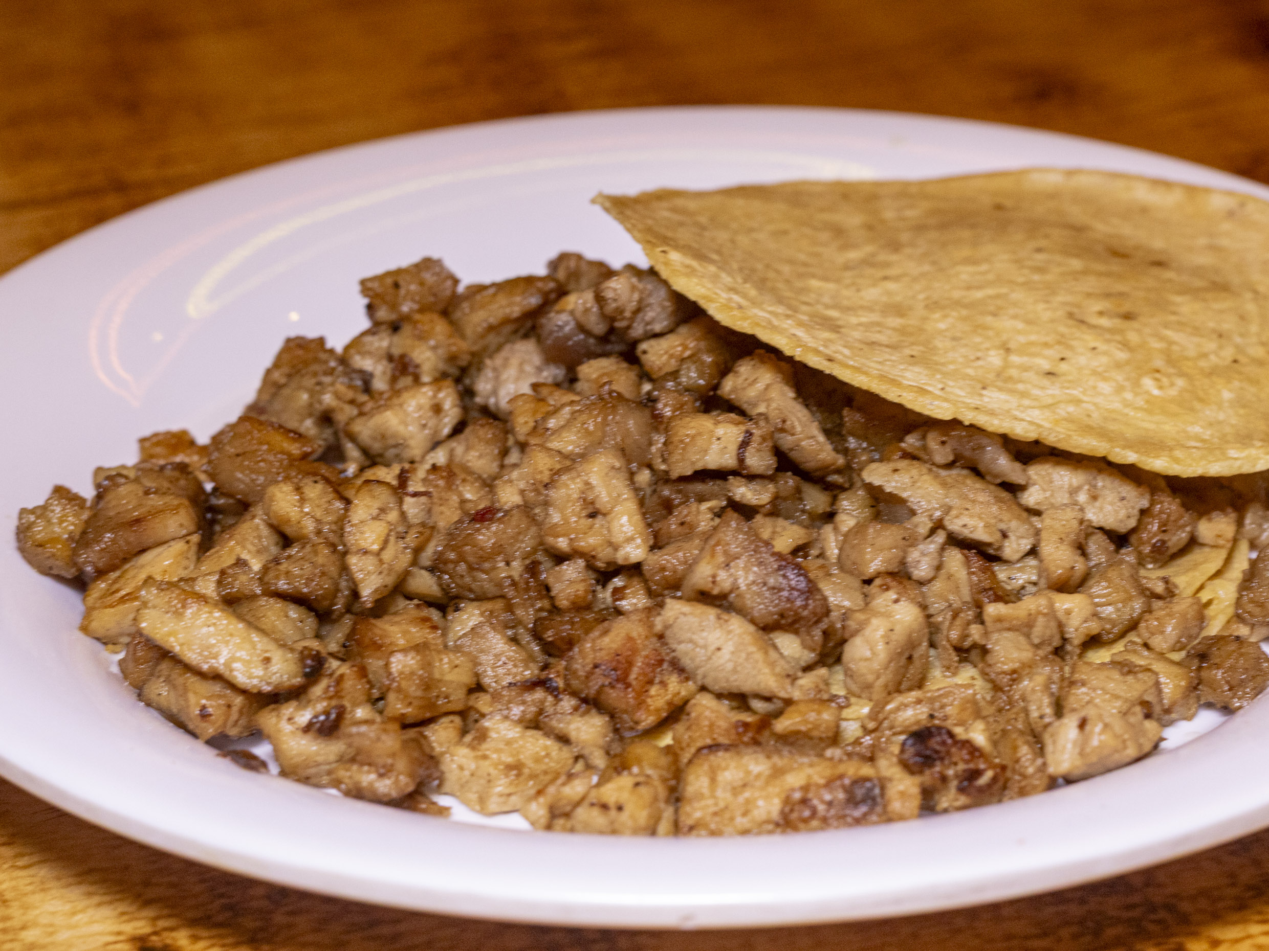 Chuleta, tocino, jamón, chile, pimiento, cebolla, tomate...