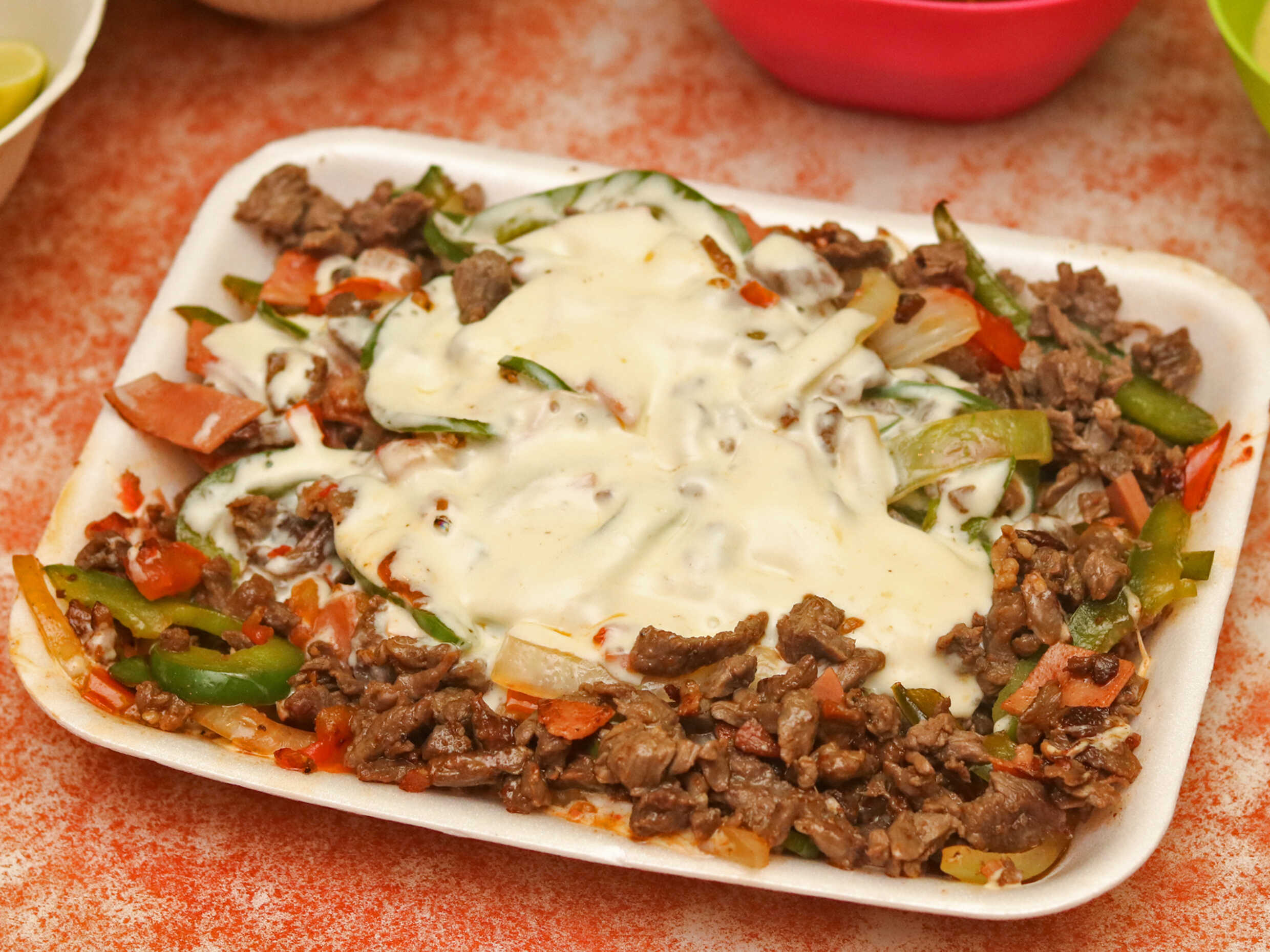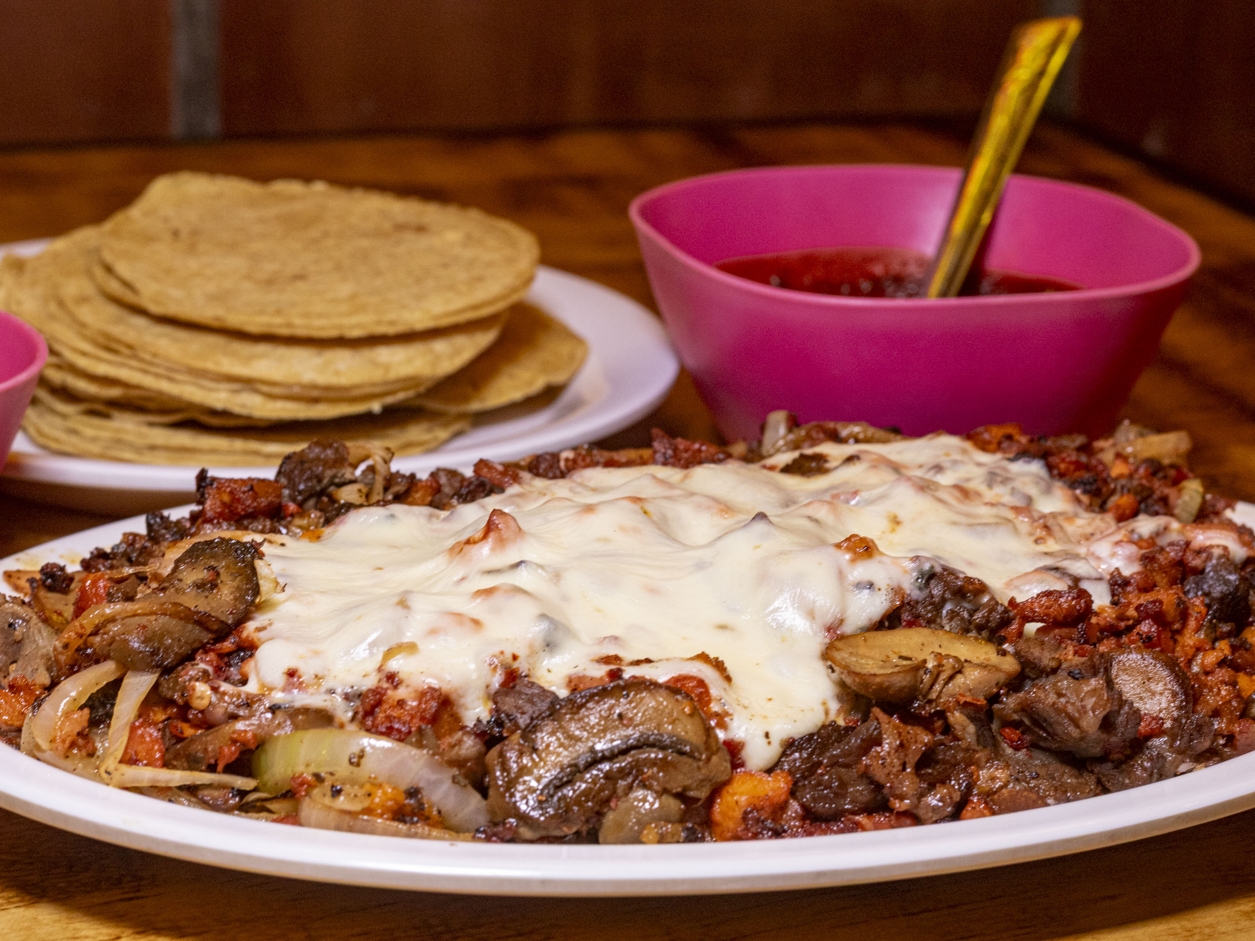Pastor, fajita, queso, aguacate, tomate cebolla y jamón.