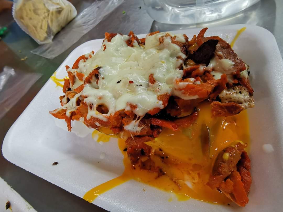 Fajita, tocino, champiñones, morrón, cebolla y queso.