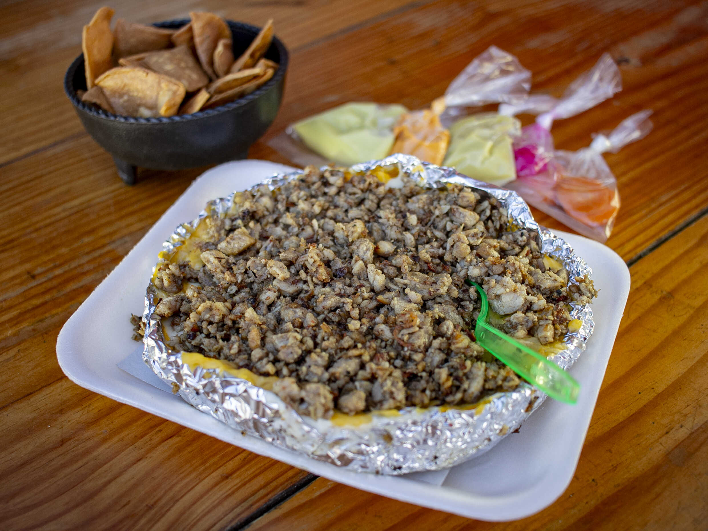 Preparada con mantequilla, crema, queso asadero, queso amarillo y totopos incluidos.