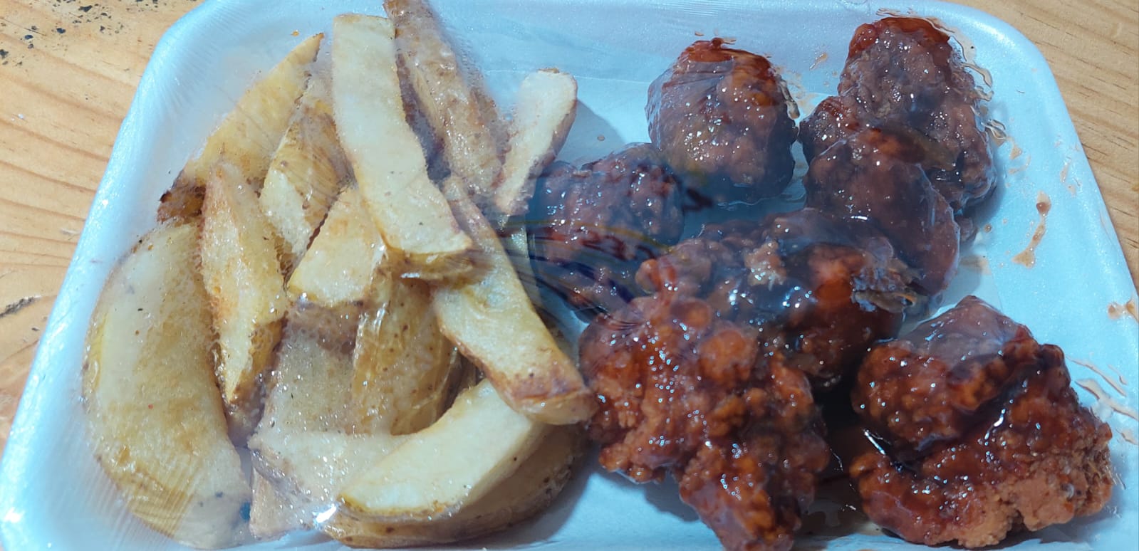 200 gr de boneless con salsa BBQ y papas fritas. ( inluye un aderezo ranch)