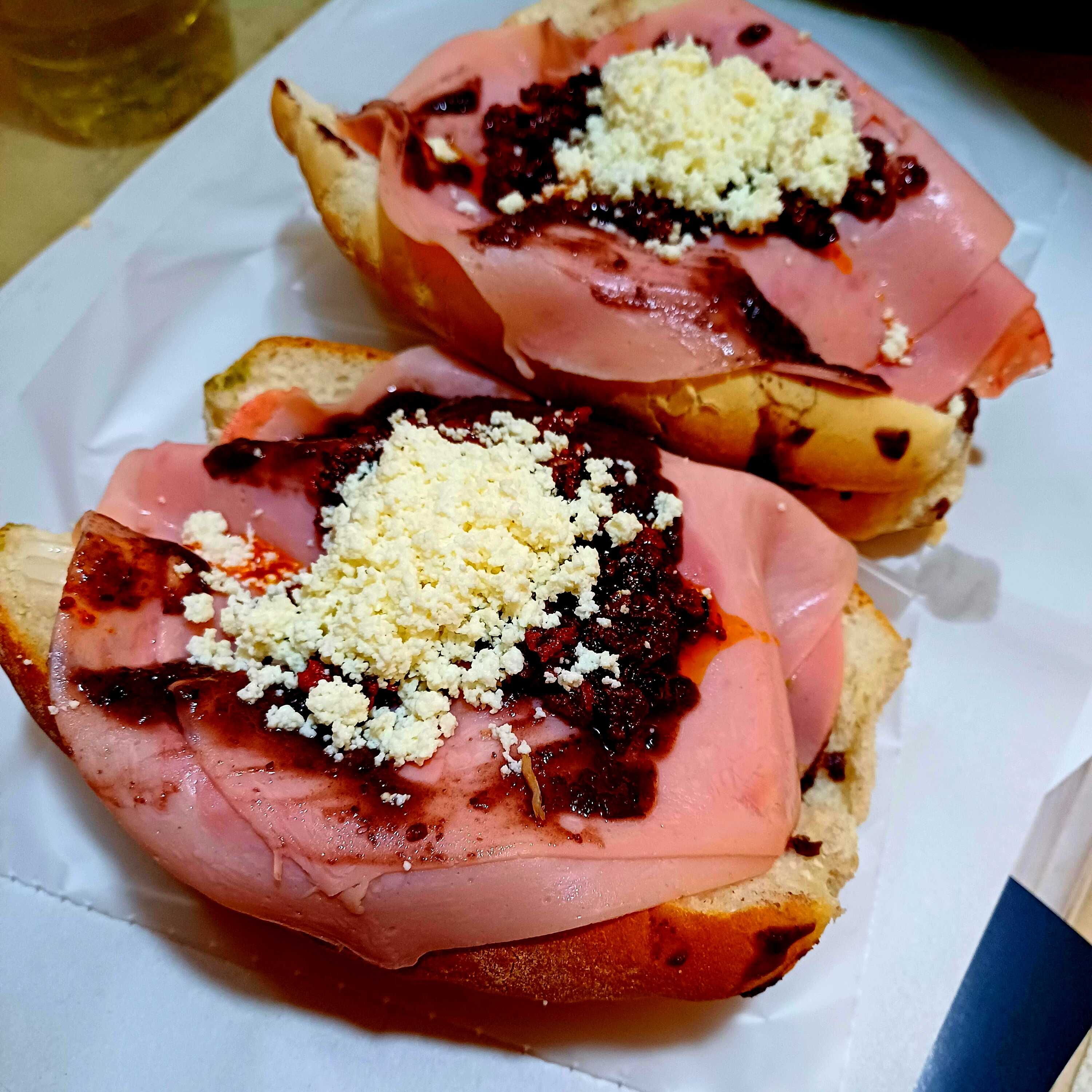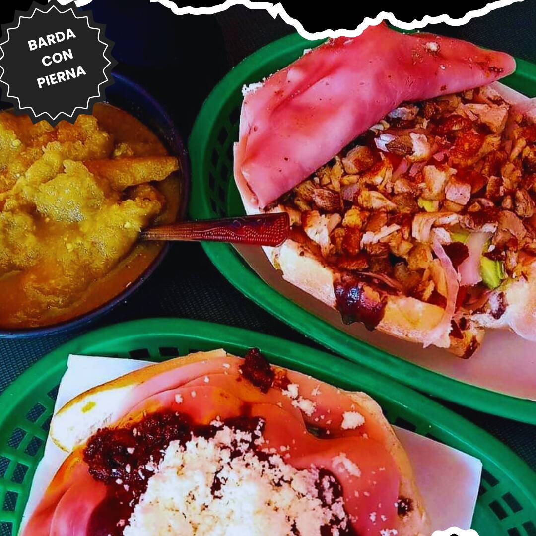 Pan de la casa con carne de especialidad de la barda y pierna.
