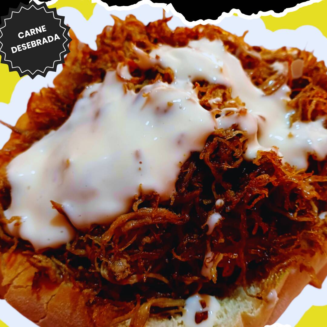 Pan de la casa mega con carne de especialidad de pierna y deshebrada.