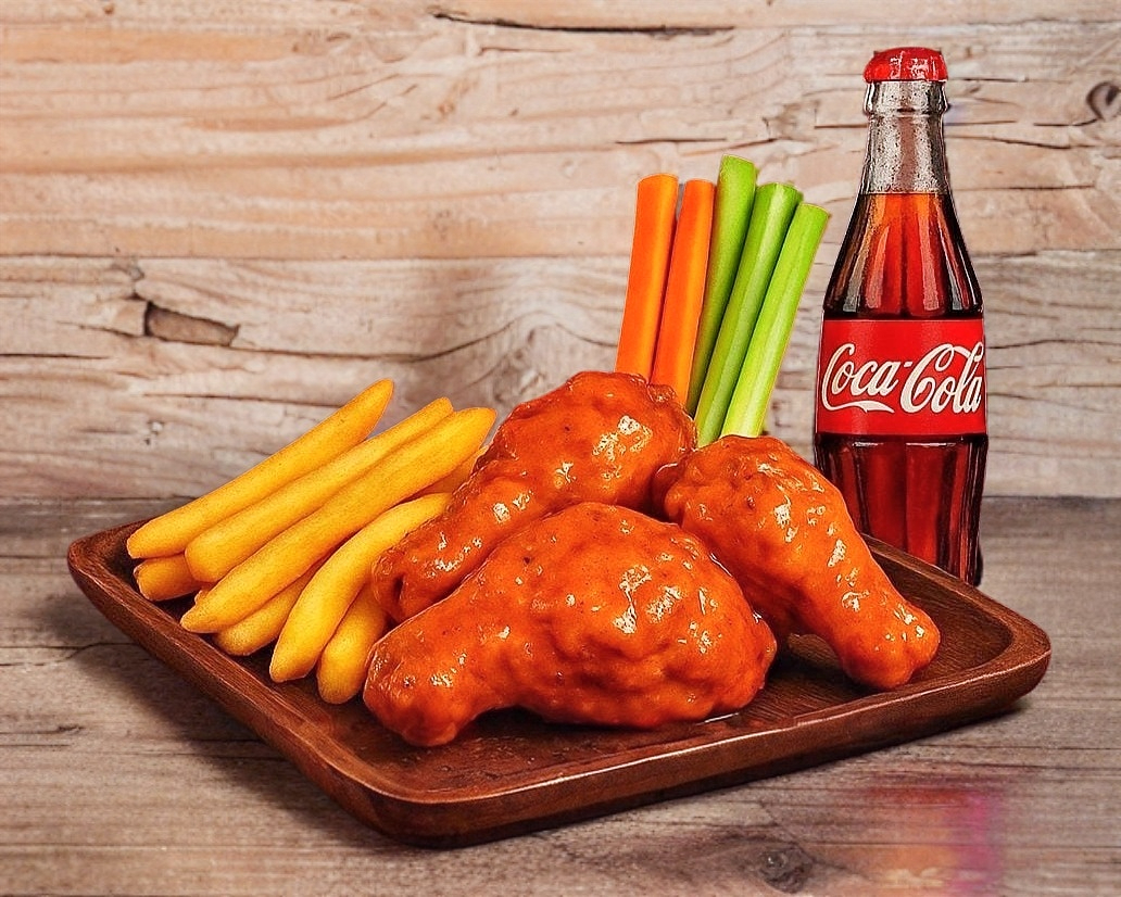 6pz de boneless 1 sola salsa + papas + 1 refresco 355ml, aderezo ranch.