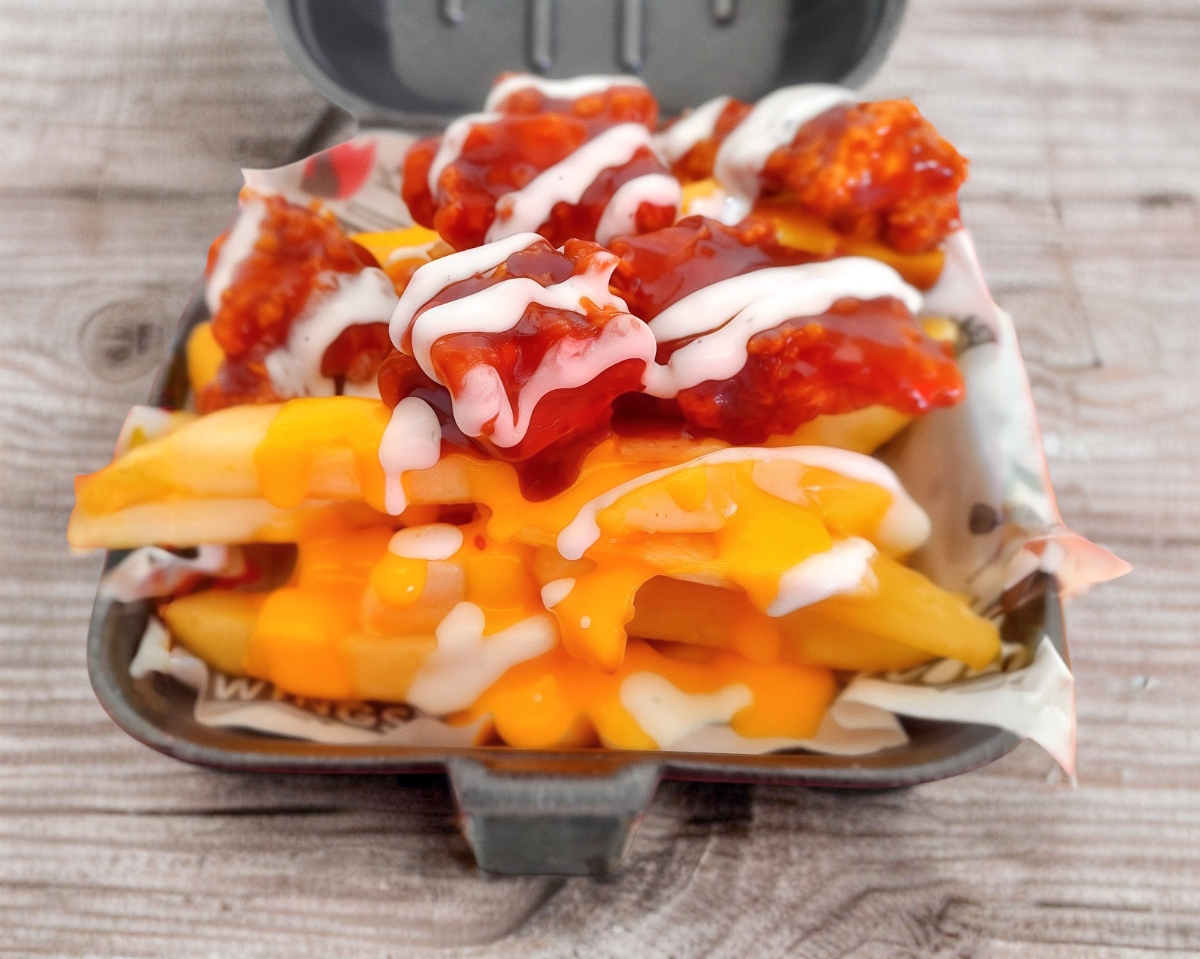 Jugosos y crujientes boneless bañados en la salsa de tu elección, queso, papas, lechuga, tomate y cebolla.