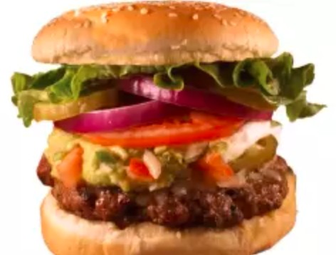 1/2 libra (227 gr) de carne sazonada, queso derretido, guacamole, pico de gallo, jalapeños y crema. Incluye papas fritas