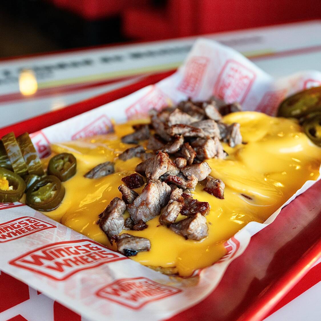 Con rico queso amarillo, arrachera y jalapeños.