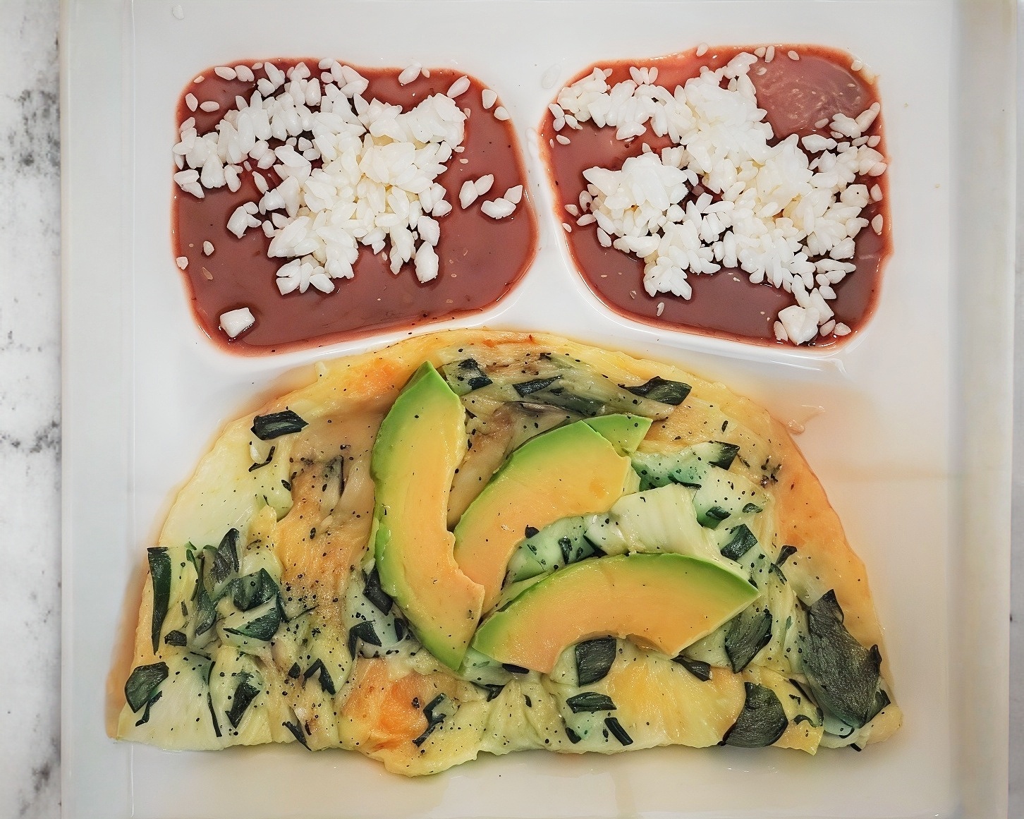 Queso panela, aguacate y acompañado de ensalada.