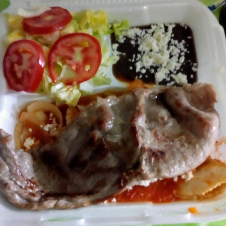 Acompañado de frijoles, tortillas y salsa.
