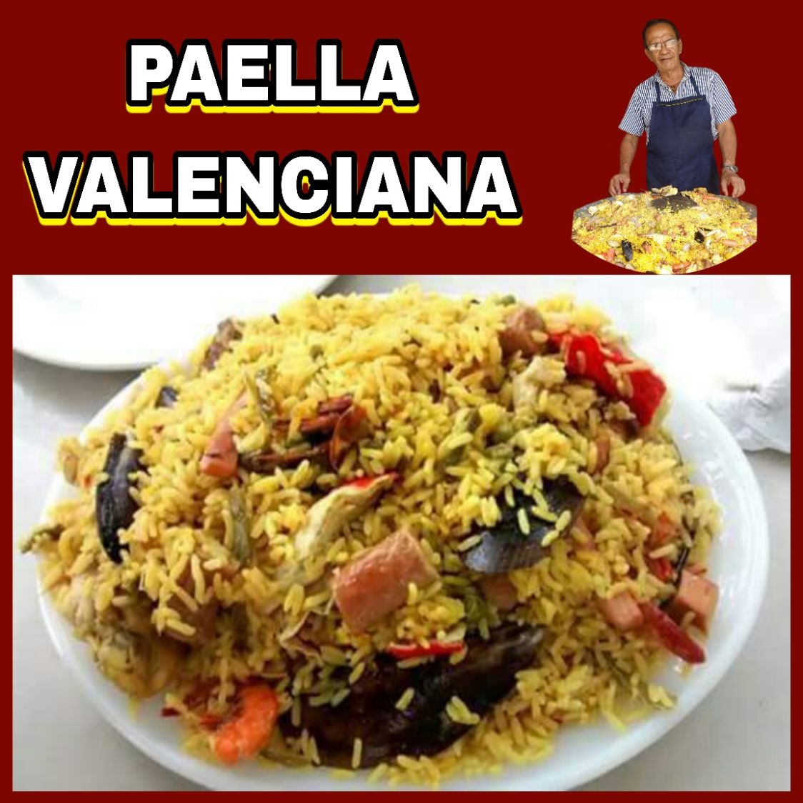 Receta heredada, preparada con arroz, mariscos, pollo, costilla y chorizo español entre otros ingredientes, cocinado al fuego lento en una paellera de hierro.