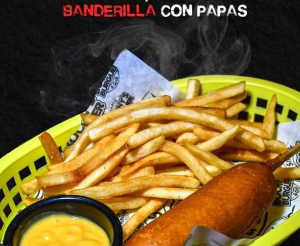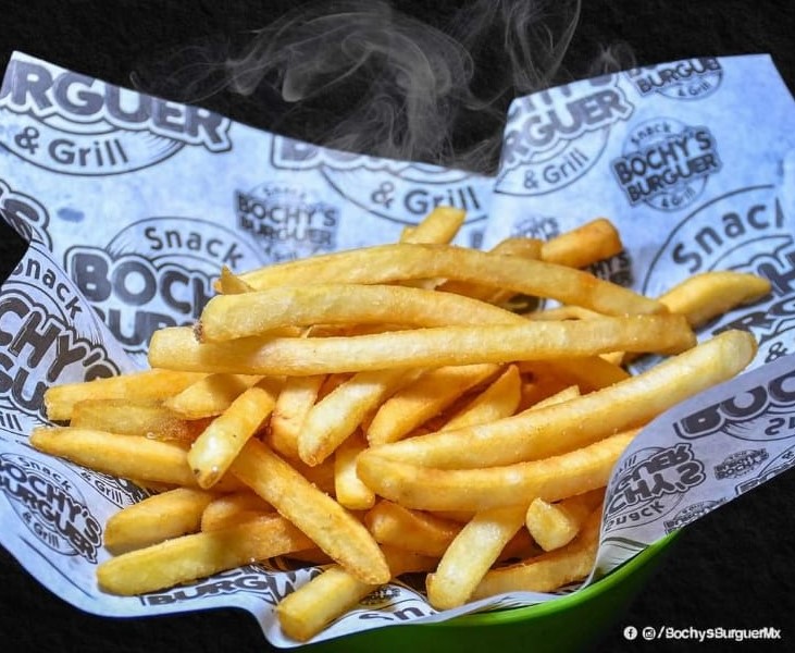Triple carne de res, mezcla de quesos, tocino, jitomate, lechuga y cebolla. No incluye papas.