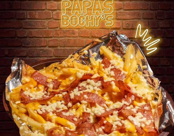 Papas a la francesa, gratinadas con mezcla de quesos y tocino.