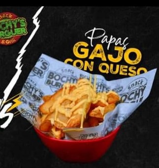 Camarón, mezcla de quesos, lechuga y cebolla. No incluye papas.