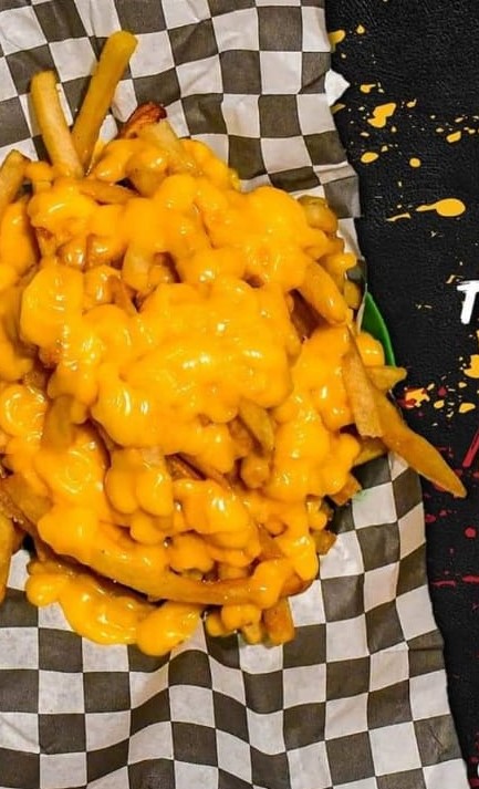Papas a la francesa, gratinadas con mezcla de quesos, tocino y carne arrachera.