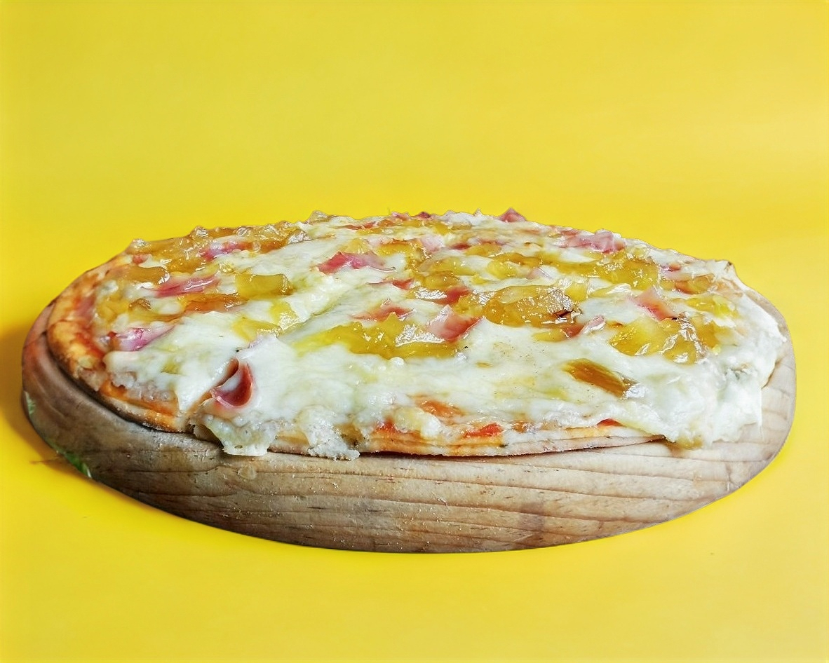 Clásica pizza que a todos gusta, con jamón, piña, queso mozzarella y salsa italiana.