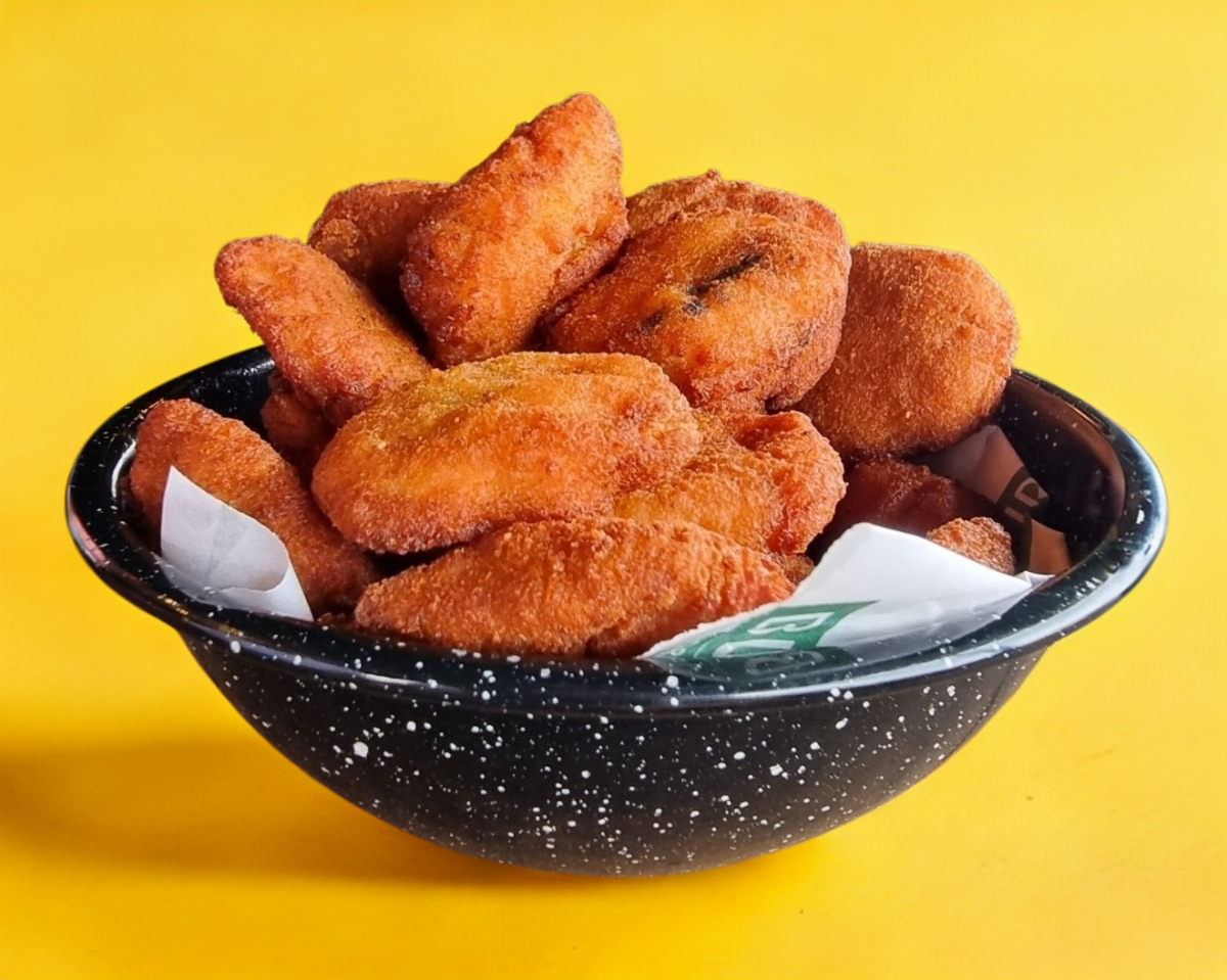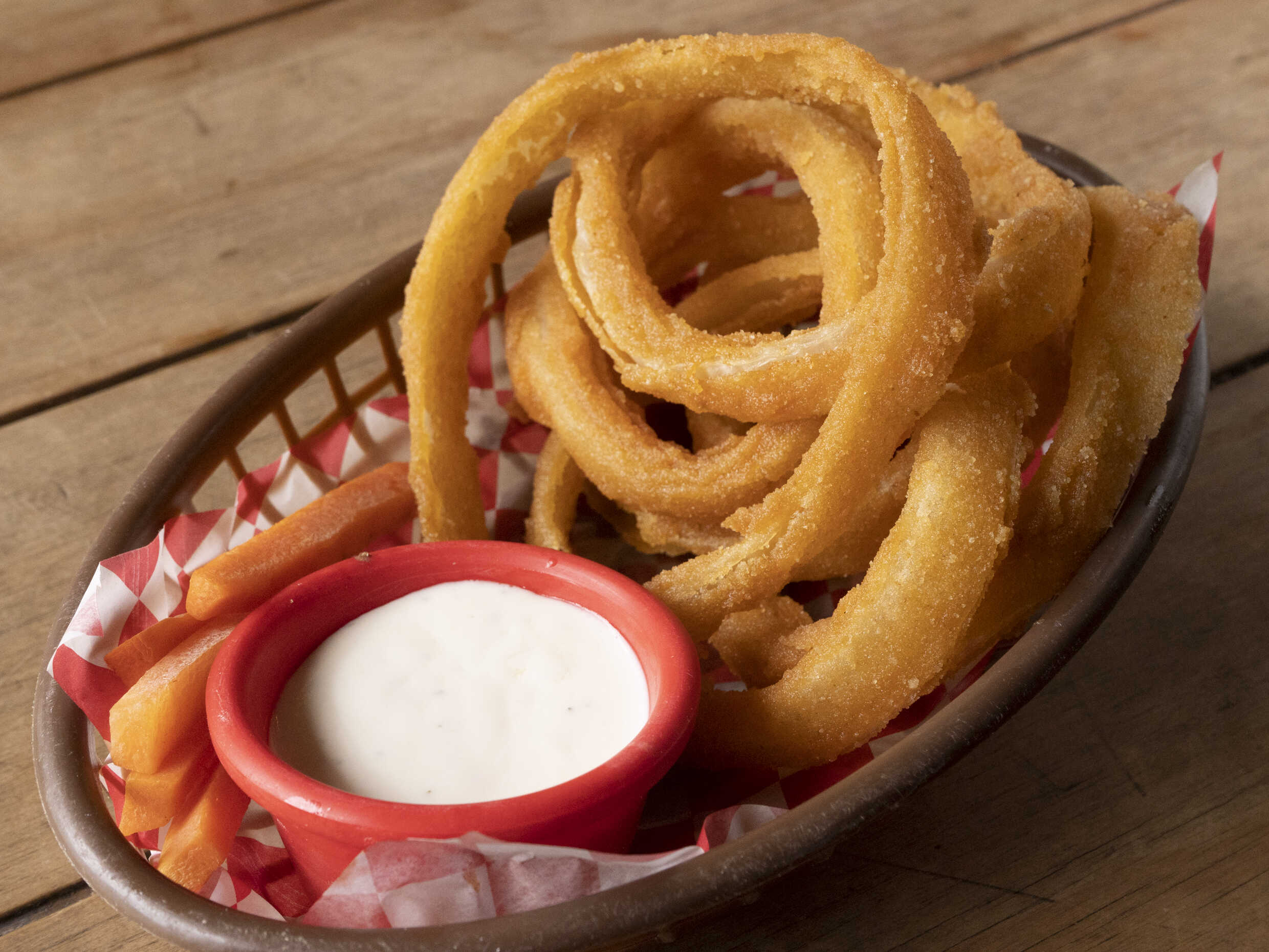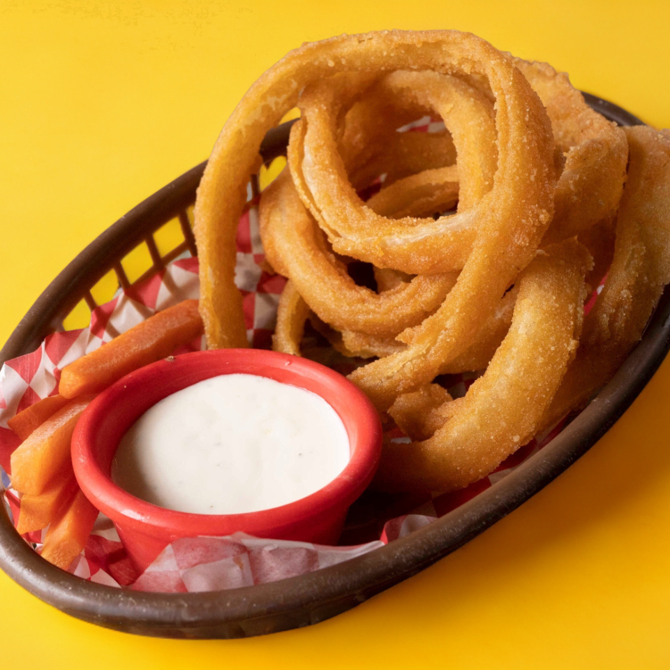 orden de 7 aros de cebolla, empanizados en tempura de la casa, hechos en la ciudadela