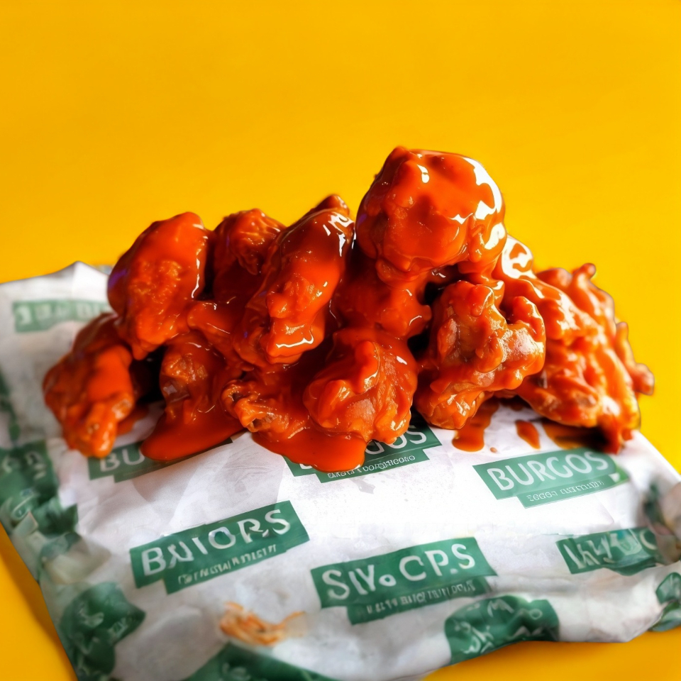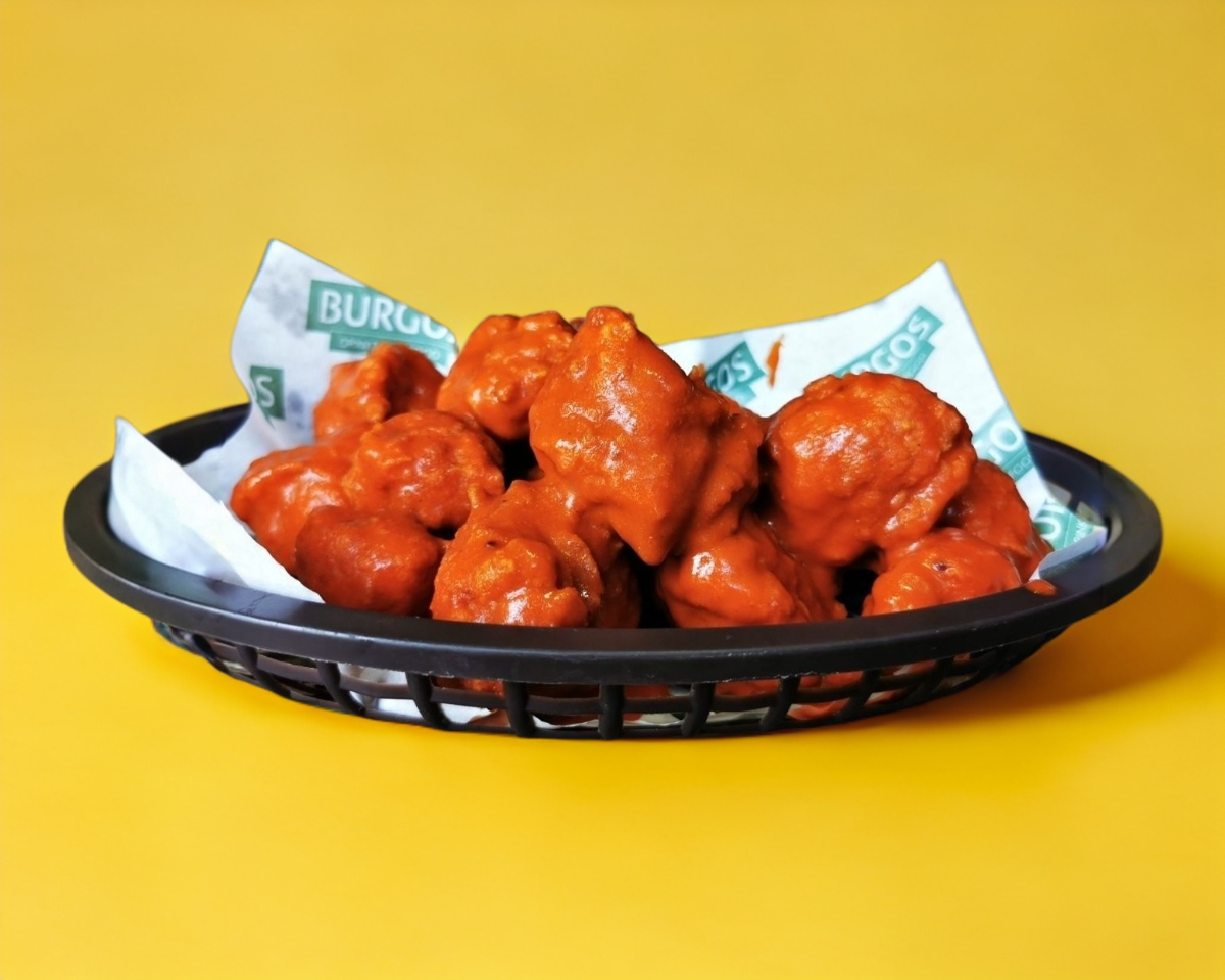 5 piezas de deliciosos boneless empanizados con la receta de la casa bañados en salsa buffalo, BBQ o mango, coronados con nuestro aderezo especial sobre una cama de lechuga fresca y pan brioche