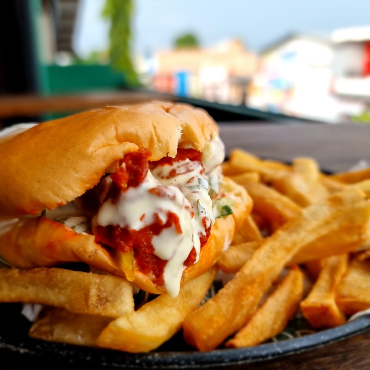 Pechuga de pollo empanizada con nuestra receta bañada en la salsa que prefieras, lechuga fresca rallada, tomate y un toque de salsa ranch en un delicioso pan brioche, incluye una guarnición.