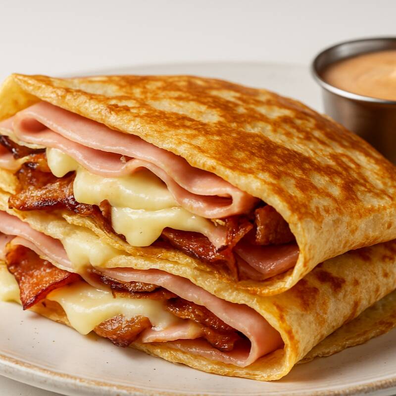 Elaborado con queso philadelphia, tocino, jamón de pavo y queso derretido con chile chipotle.